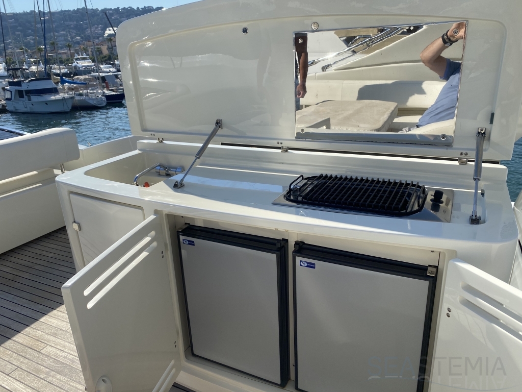 This boat is equipped with a stabilizer, cockpit controls (front and rear thruster), a jet ski park and a 385 jet tender!