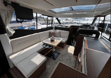 New to our inventory, this targa cruiser delivered in 2019 to its first and unique owner is in an absolute mint condition and is a perfect opportunity to enter into the nautical world with a polyvalent and family-oriented qualitative yacht. This Jeanneau NC37, with low engine hours is VAT paid, and is equipped with the full range of options, which are characterized by both plenty of interior and exterior space for its length. She comes in a 3 cabin layout version and can accomodate up to 8 guests, including the saloon's convertible sofa to a double-bed. This boat, visible in the Netherlands always sailed in softwater navigation zones, she is up-to-date as for technical maintenance and ready to start the summer season with her next owner.