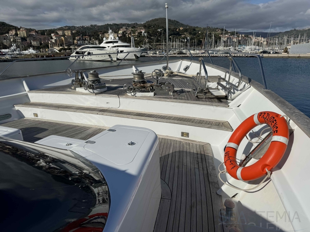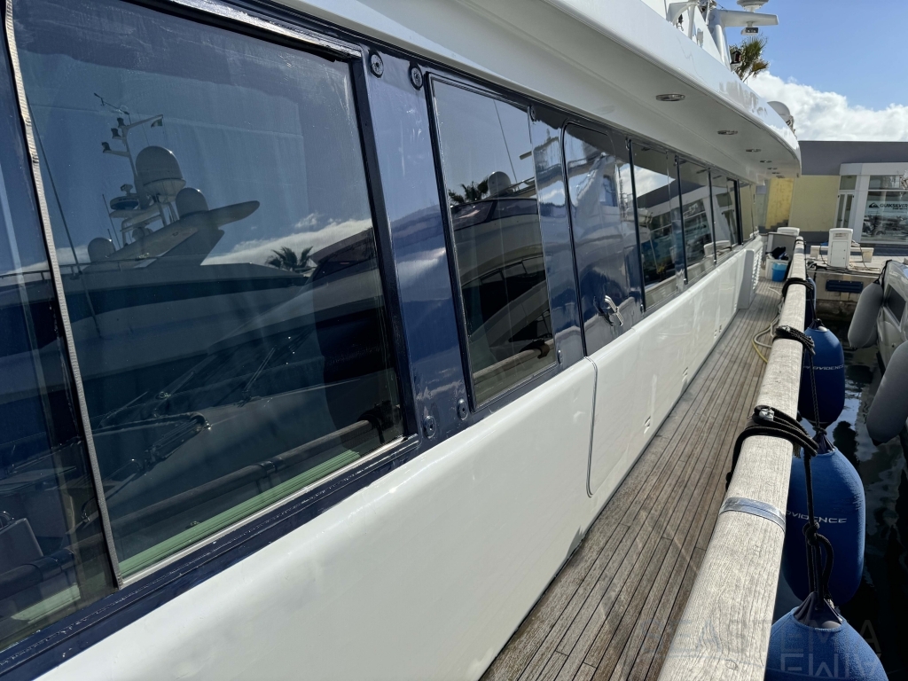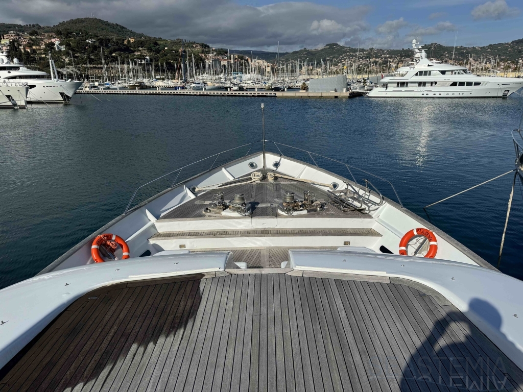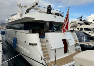 This cusom aluminium semi displacement Raised pilot house is a voluminous 197GT superyacht with a long range which has been launched in 1993 from Astilleros, a spanish shipyard which is a reknown specialist of Aluminum connstruction.
