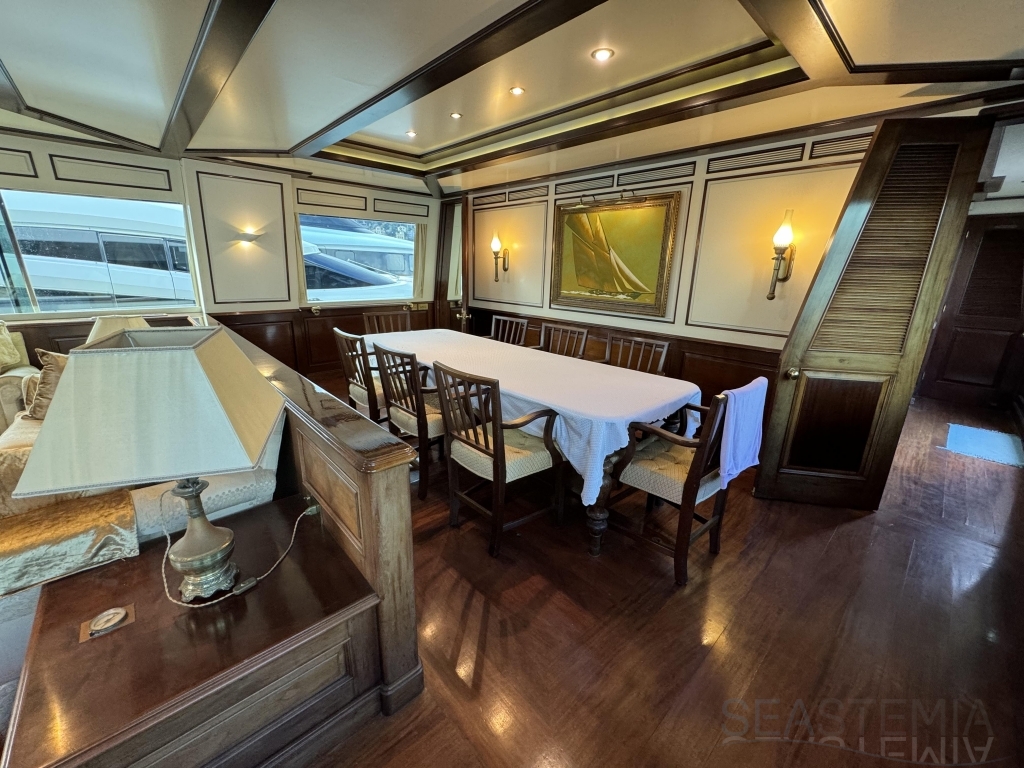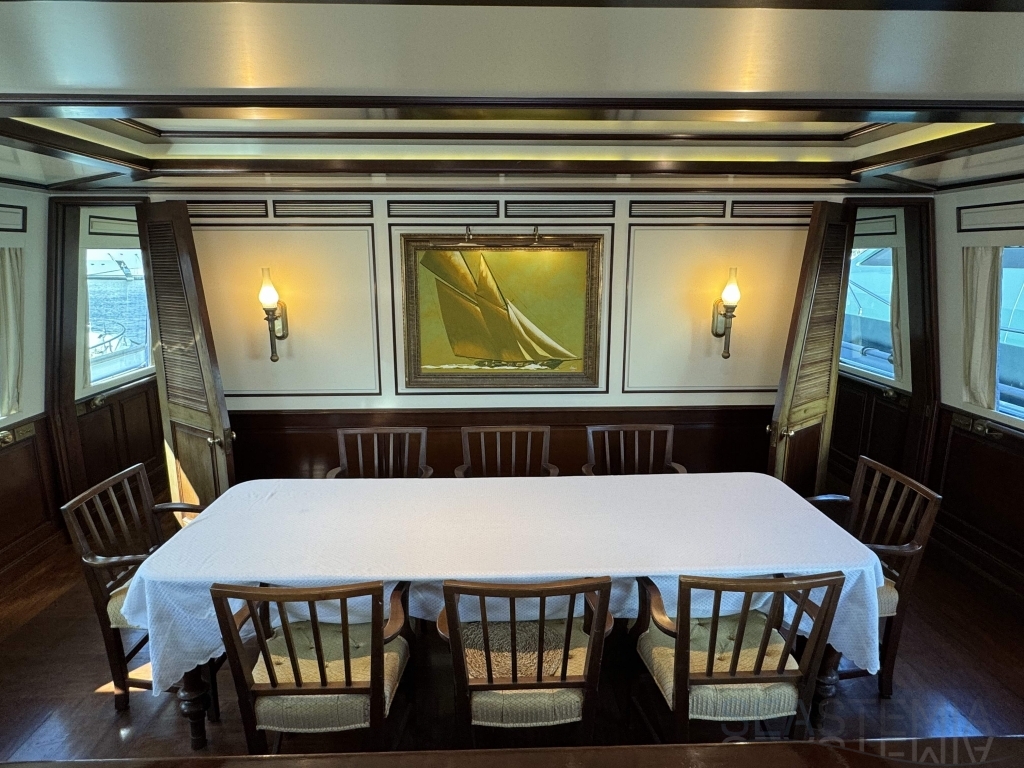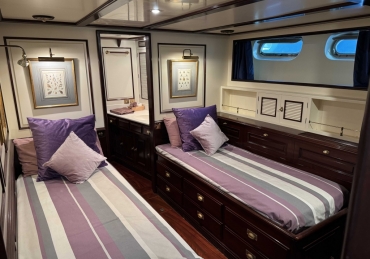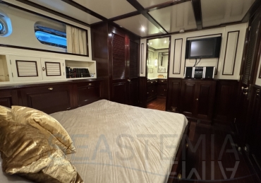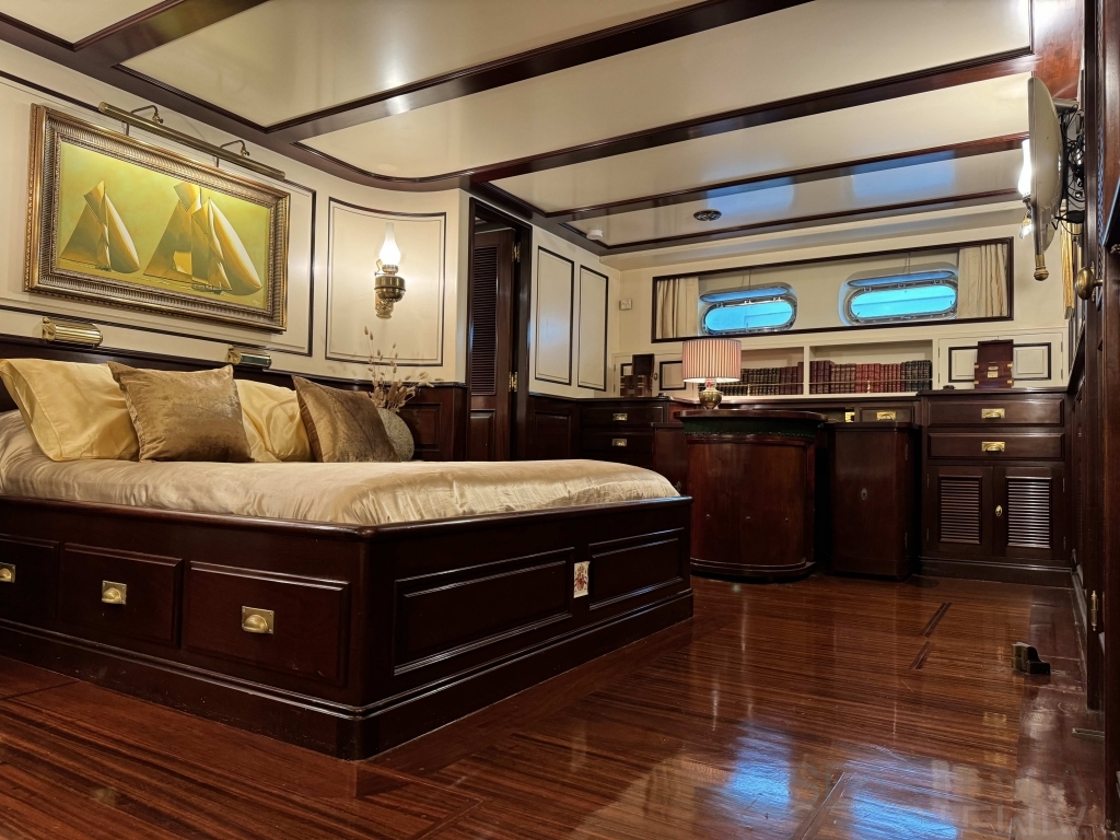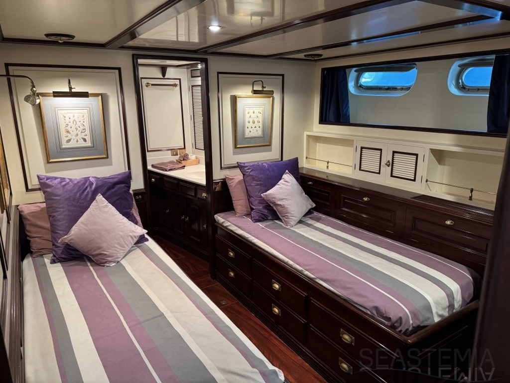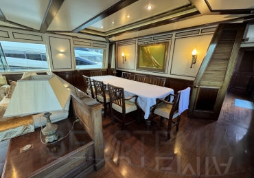 Shee got an extensive refit in 2005 and is maintained since then by her third owner in a very good aesthetical and technical condition, with regular maintenance jobs and a permanent crew onboard. Strong MTU engines, 5 cabines layout to accomodate in full comfort 10 guests served by 6 crews in an elegant massive dark wood and rich carpentry interior to complete the picture, to offer a true classical luxury Yachting experience.