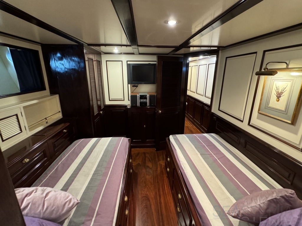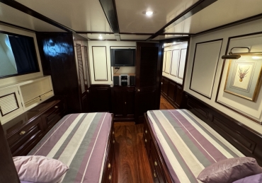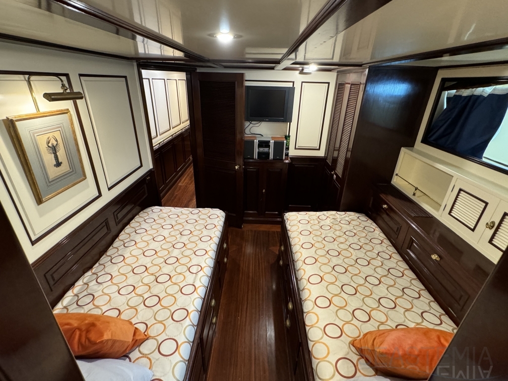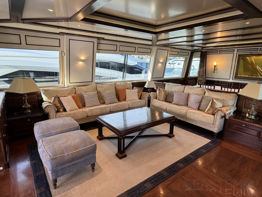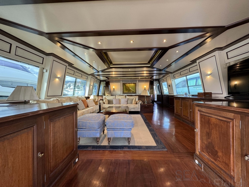 Shee got an extensive refit in 2005 and is maintained since then by her third owner in a very good aesthetical and technical condition, with regular maintenance jobs and a permanent crew onboard. Strong MTU engines, 5 cabines layout to accomodate in full comfort 10 guests served by 6 crews in an elegant massive dark wood and rich carpentry interior to complete the picture, to offer a true classical luxury Yachting experience.