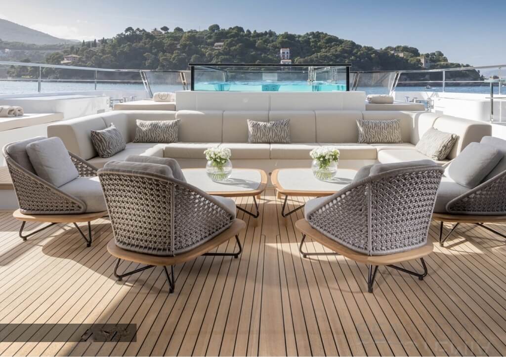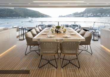 Her generous deck areas play host to a wide range of amenities including an outdoor bar, Jacuzzi and ample space for sunlounging and relaxing. Seven Sins's impressive leisure and entertainment facilities make her the ideal charter yacht for socialising and entertaining with family and friends.