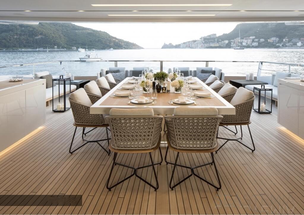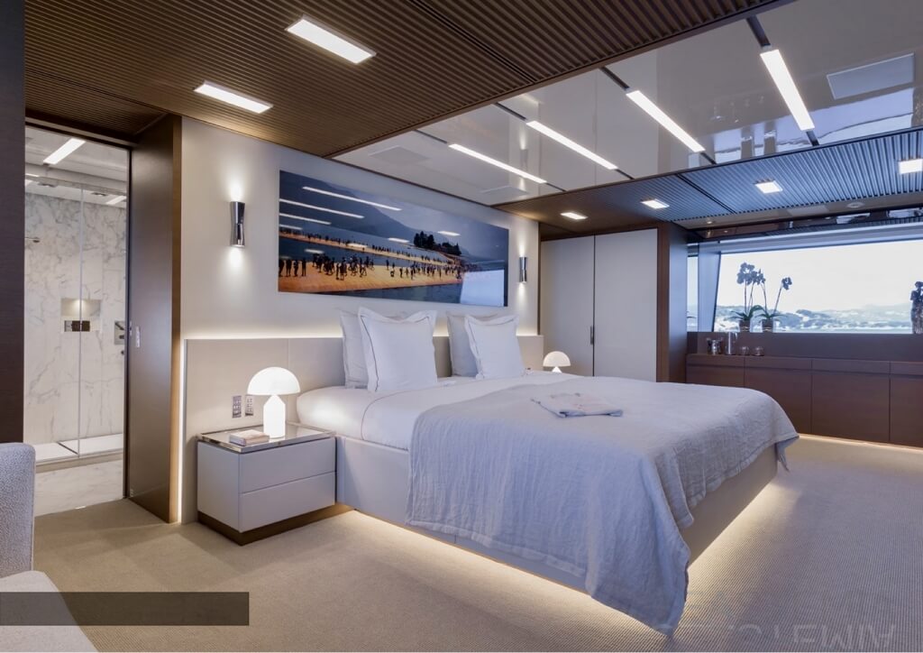 San Lorenzo 52 meters interior layout sleeps up to 10 guests in 5 rooms, including a master suite, 1 VIP stateroom and 2 double cabins. She is also capable of carrying up to 9 crew onboard to ensure a relaxed luxury yacht experience. Timeless styling, beautiful furnishings and sumptuous seating feature throughout to create an elegant and comfortable atmosphere.