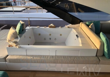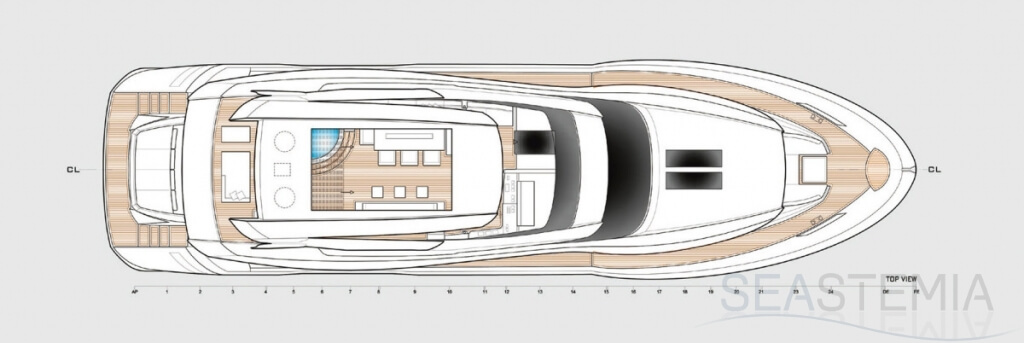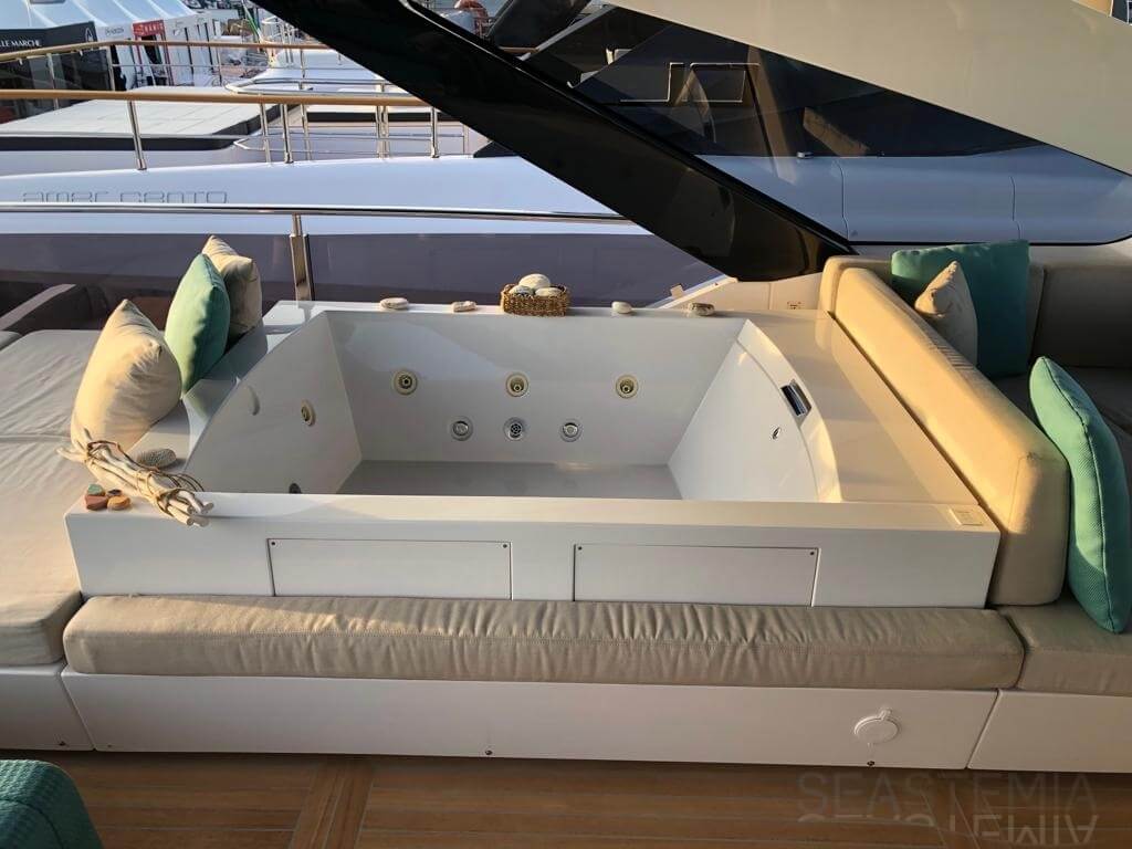 Thanks to its semi planing lama new hull from Arabito, the yacht at 12 knots consumption is no more than 70 ltrs in total with a range increased to 1400NM, while when needed she can reach a top speed of 23 Knots.