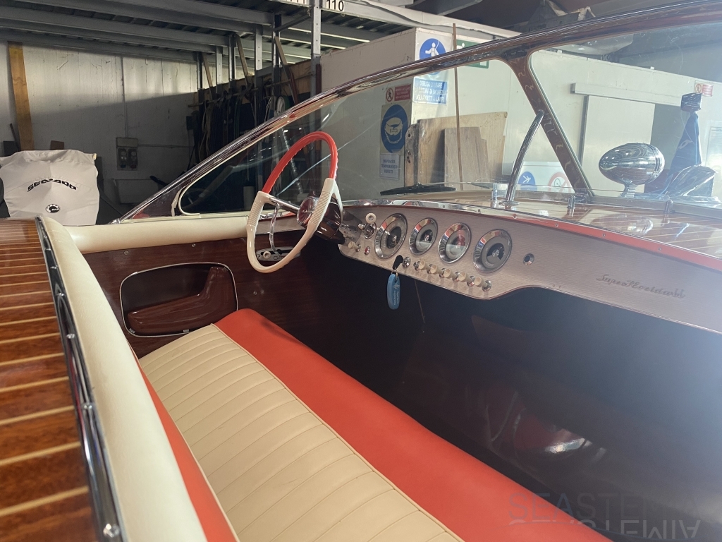 Nous vous proposons ici un tres bel exemplaire du fameux modèle classique de chez Riva entièrement en acajou: Le RIVA FLorida Super. Doté d'un historique clair, construit en 1965 et récupéré en Sardaigne par son second et actuel proprétaire actuel depuis plus de trente ans, ce bateau porte le numéro 589 dans la serie des 711 exemplaires construits au total entre 1953 et 1968. il a été entièrement restauré dans le respect  des techniques originelles à son état d'origine pour être aujourd'hui encore en état concours. (coque/ moteur/scellerie/acastillage...)