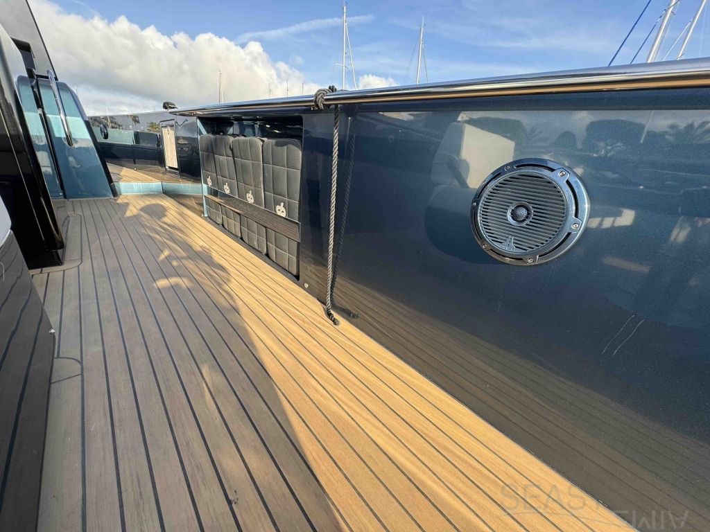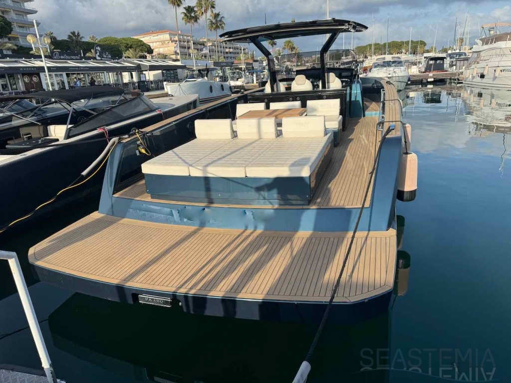Le Pardo 43 de 2018, situé sur la Côte d'Azur, en France, mesure 14,00 mètres de longueur hors tout et 4,20 mètres de large. Connu pour ses solutions techniques supérieures, ses performances, son confort et son luxe, ce bateau atteint une vitesse de pointe de 34 nœuds et navigue confortablement à 26 nœuds. Il dispose d'une cabine propriétaire avec un lit double et deux lits simples pour les invités. Ce yacht bien équipé comprend deux grands bains de soleil (avant et arrière), une grande plateforme de bain, un bimini électrique, un stabilisateur gyroscopique à vitesse zéro Seakeeper, un générateur et la climatisation. Avec seulement 270 heures, ce yacht privé est en excellent état.