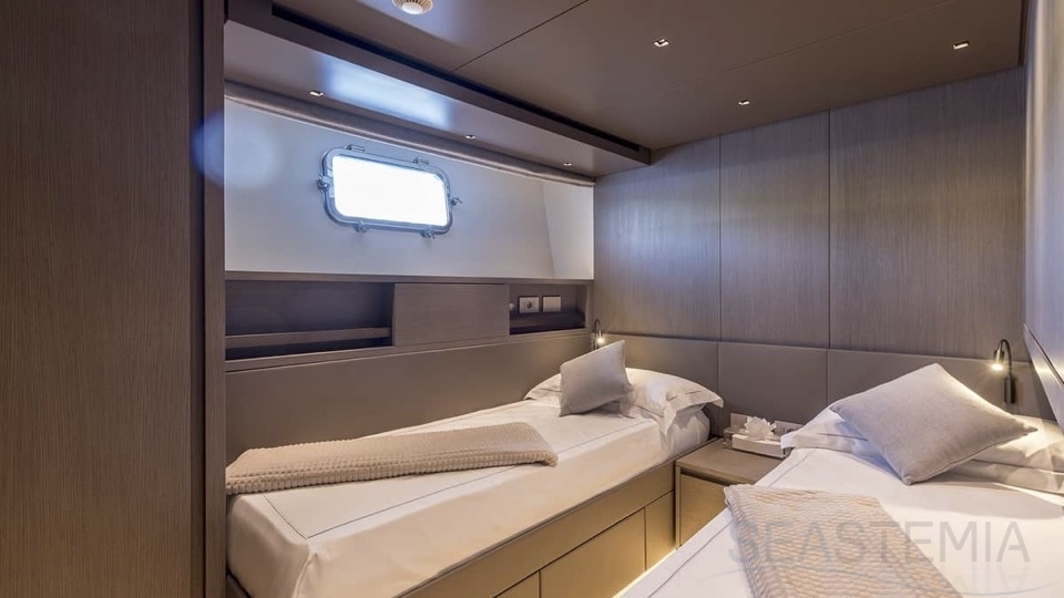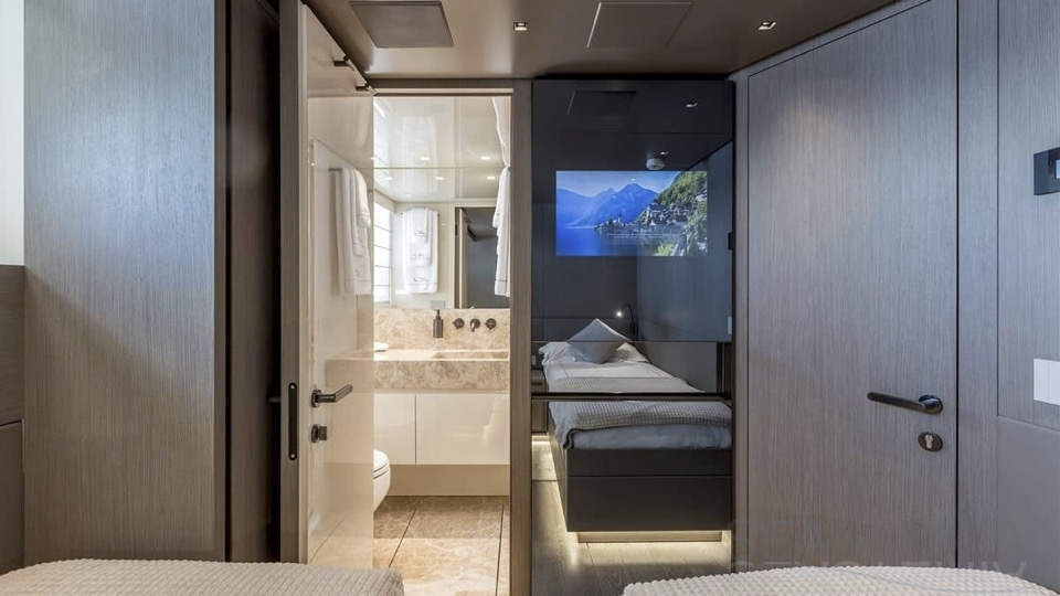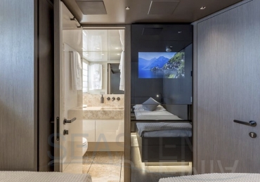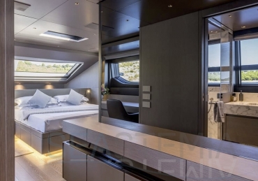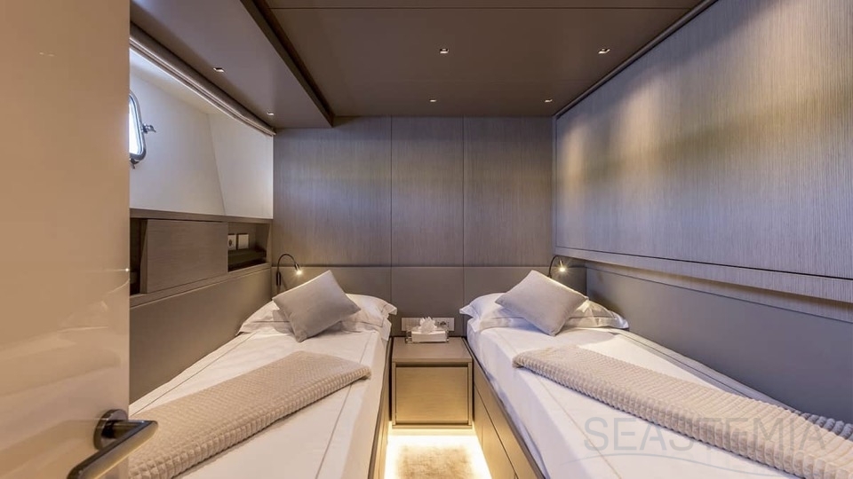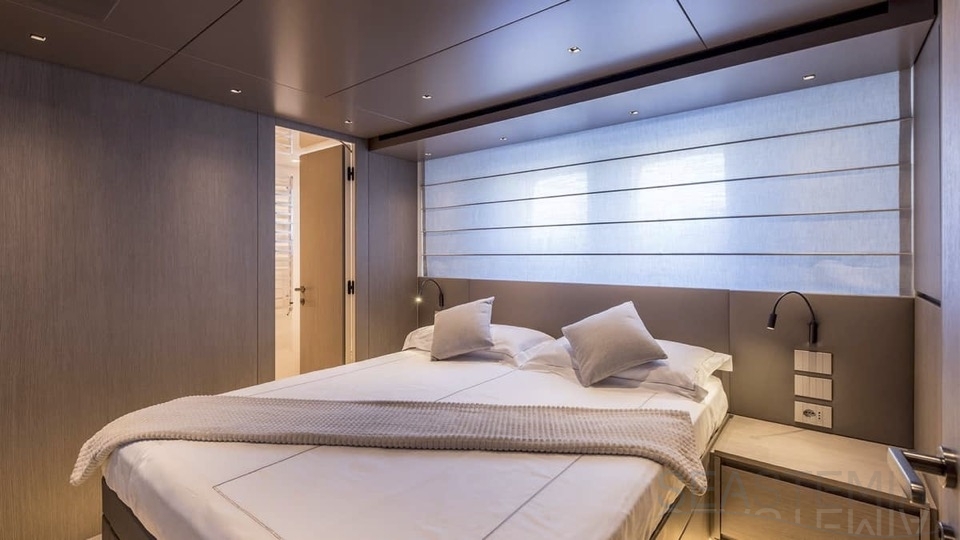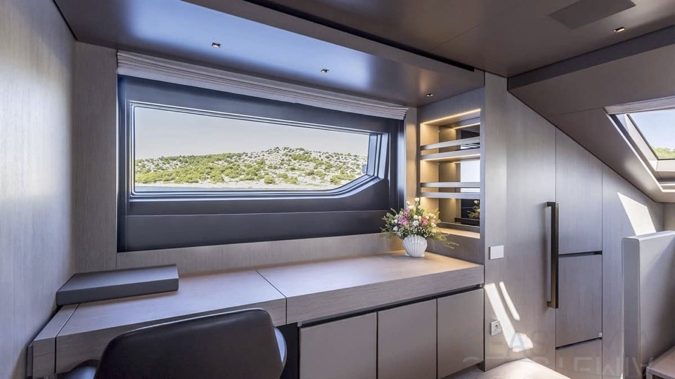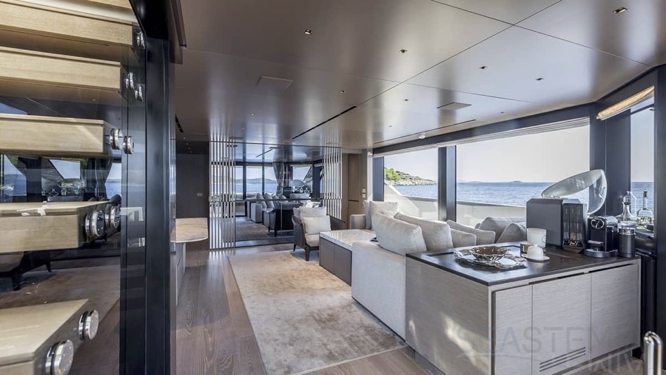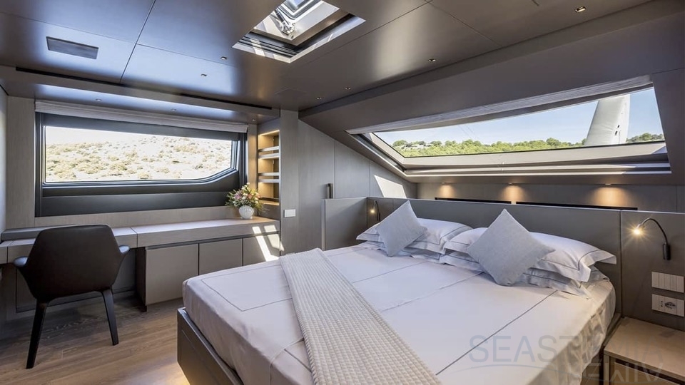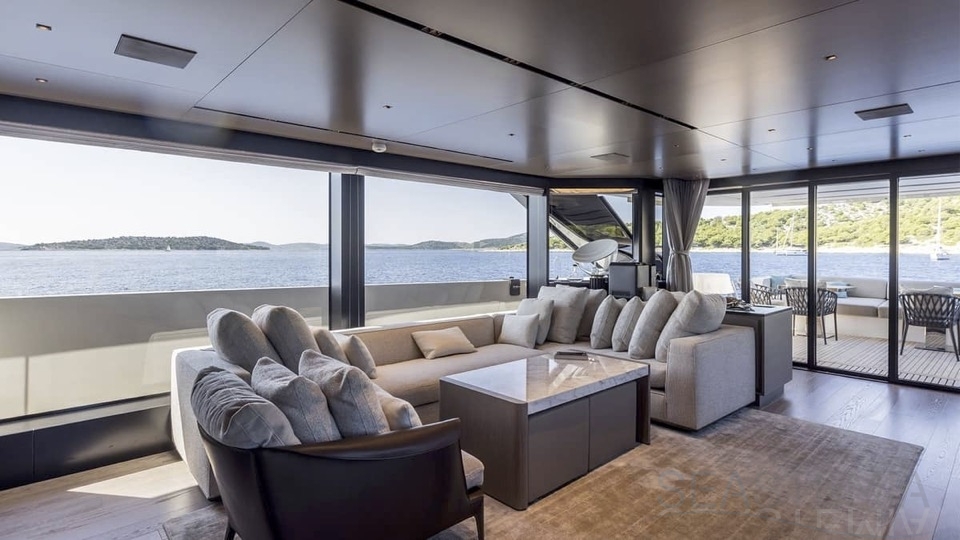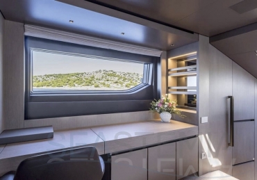 Delivered in July 2023, this SL96A is a rare opportunity to purchase recently built Sanlorenzo, part of the revolutionary Asymmetric series. With a modern and elegant design and high-end specifications, this yacht also presents exceptional charter potential. Competitively priced, she is a perfect fit for an owner interested in acquiring one of the newest yachts in her category without the lengthy new build wait. SL96A boasts a 5 cabin layout with an additional pullman bed to accommodate a total of 11 guests. The Owner’s stateroom offers direct access to the port side enhancing privacy and convenience. SL96A offers exceptional volumes for a yacht of her size, making her feel like a much larger vessel. In fact, her unique innovative asymmetric design provides 15% additional volume on the main deck. Floor-to-ceiling windows offer lots of natural light and amplify the effect alongside a sliding wall on the port side in the main salon, providing unparalleled panoramic views, bringing the beauty of the sea indoors.