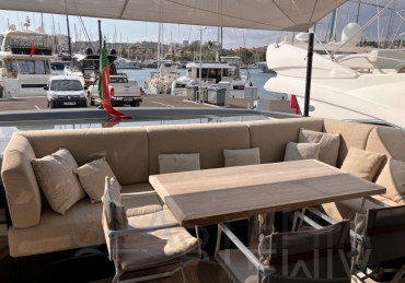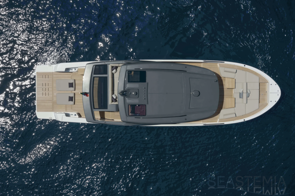 The elevated aft cockpit ensures both privacy and a welcoming atmosphere, with smooth access to the galley and main deck dining area—perfect for entertaining guests in absolute comfort.