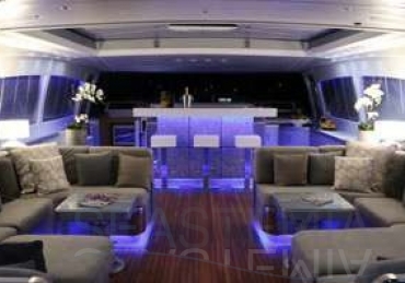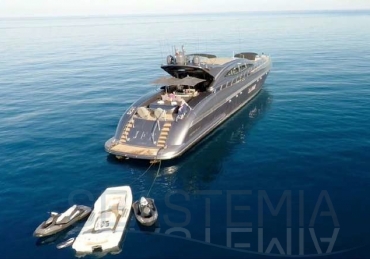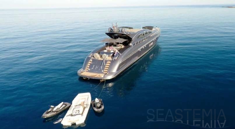 This luxury Mangusta 108 provides a generous accommodation for up to 8 guests in 3 staterooms: a master cabin, a VIP cabin, one double cabin and a lounge area. You will appreciate her elegant lines and the interior that combines a modern and sophisticated atmosphere, with plenty of natural light during the day and refined illumination. With a modern sound system, this exclusive yacht is designed to bring you amazing experiences during all kind of celebrations.