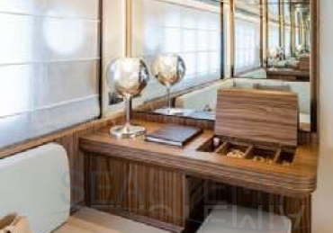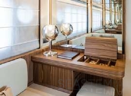 The layout of M/Y ABSOLUTE was conceived with the emphasis on spacious arrangement and loads of natural lighting. With three dedicated sunbathing areas: one at the bow with a large folding sunpad, and two on the fly, she offers an exceptional place for those who love seing at in the sun. The large shaded dining table at the aft deck and the other at the fly will assure plenty of lively moments, whether it comes to fancy cocktails, romantic dinners or family celebrations.