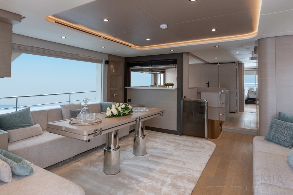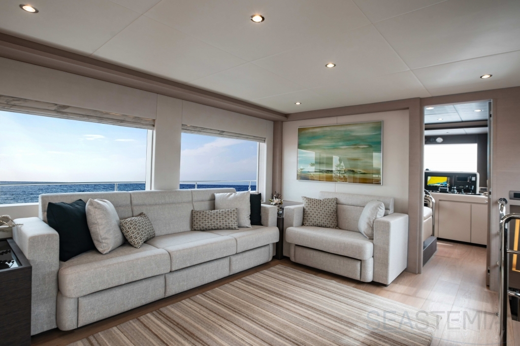 The Nomad 75 delivers both an open fly-bridge version or fully enclosed upper deck and creates a feeling of space and comfort beyond the category specification.