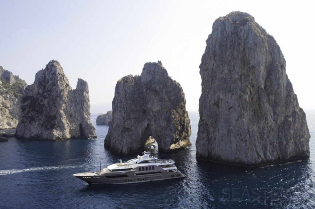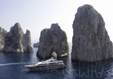 J’ADE is pleasure vessel with a strong identity, thanks to her specific spatial, formal solutions and features, making the pleasure ship immediately recognizable. A very aggressive and captivating shape with a warm grey hull which contrasts with the white superstructure.