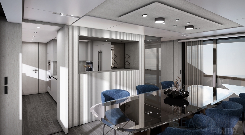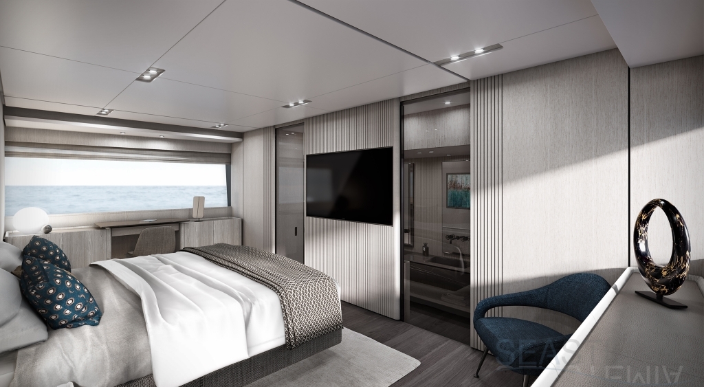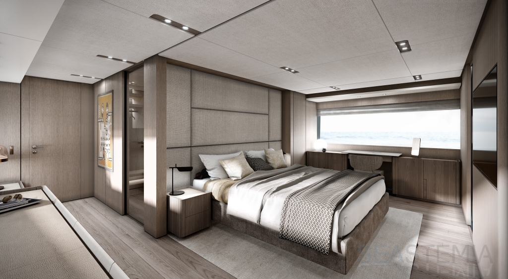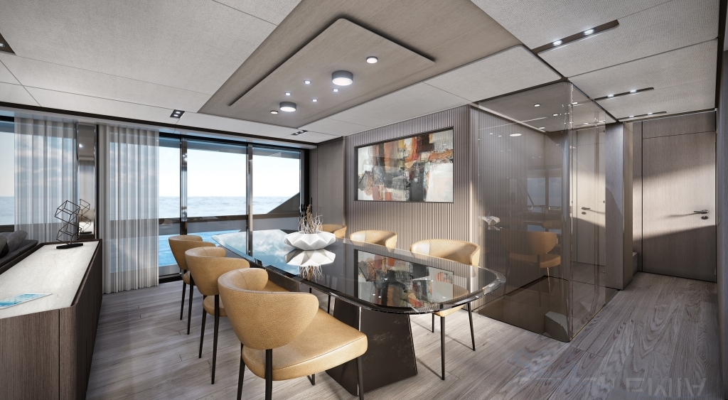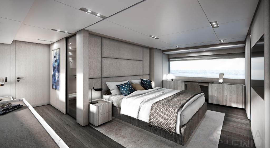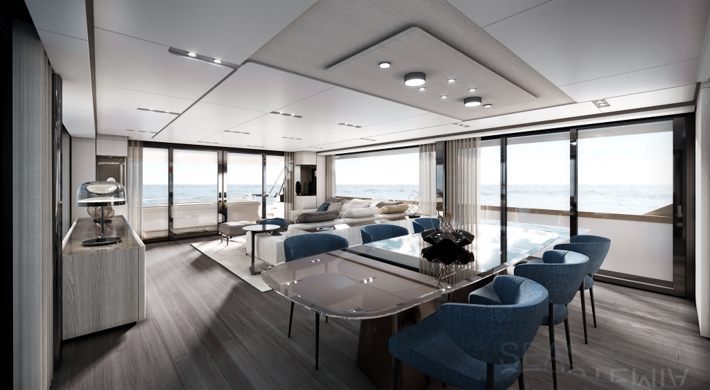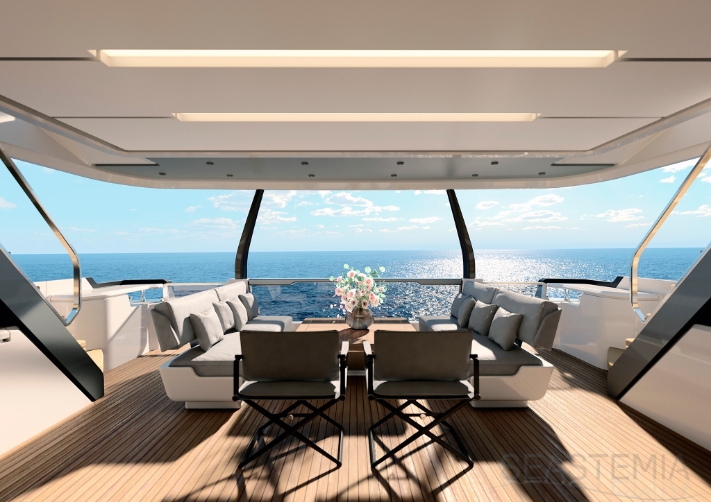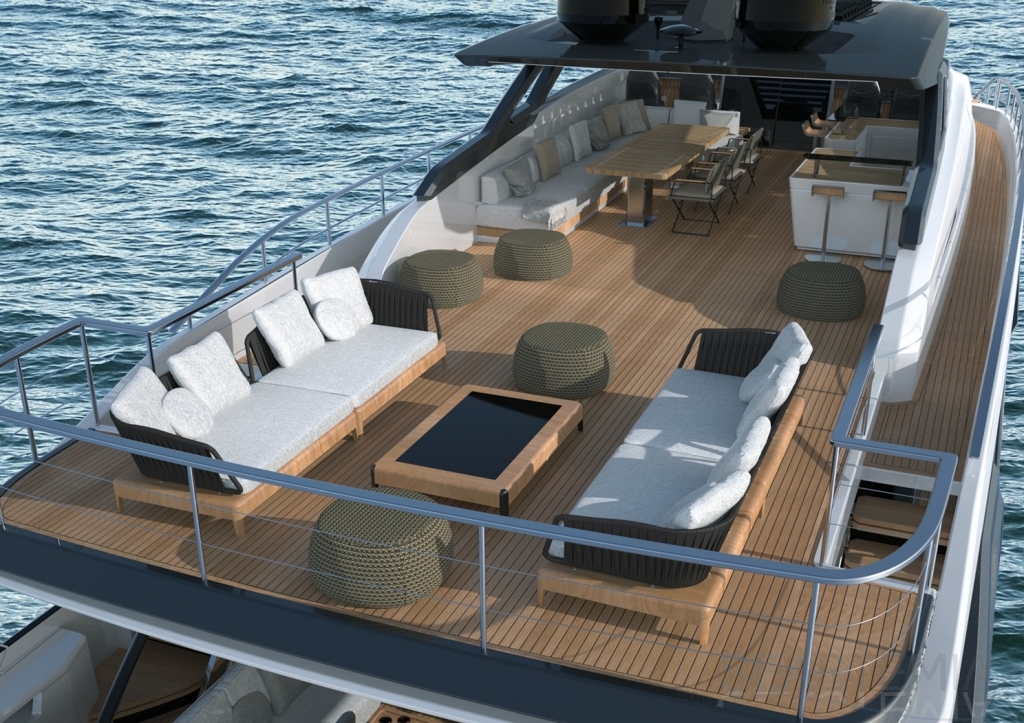 No dream is too big: overall lenght of 100 feet and first breath takingn units which brings Ferretti into new territories. This forthcoming new Majestic and Versatile Ferretti flagship redefine all spaces and onboard life. With its brand new concept aft beach platform as well as its new bow to Fly total connection, this new yacht will offer to improve again owners and guests privacy and onboard life thanks to unprecedent innovative solutions and features.