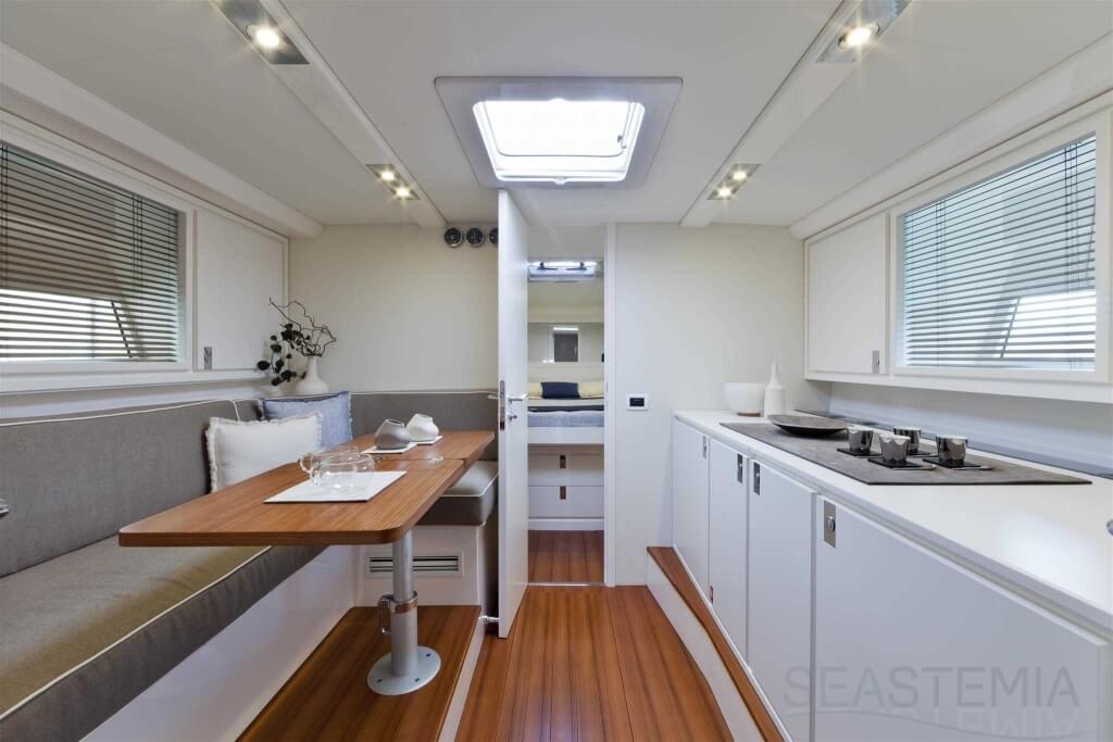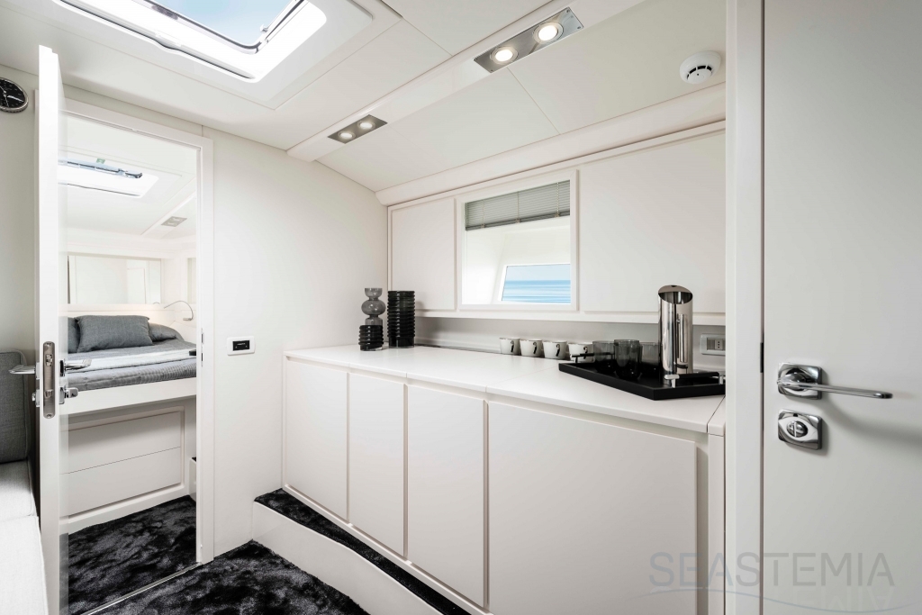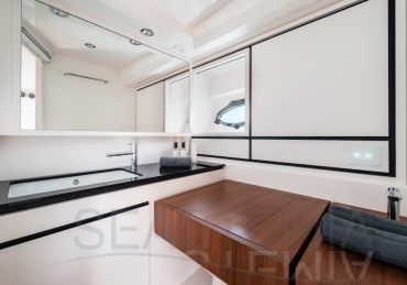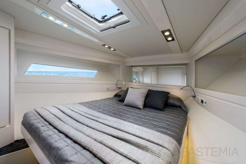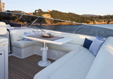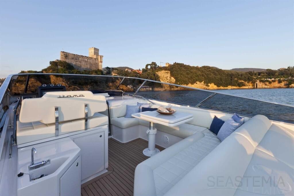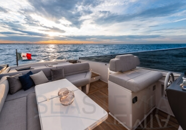 All timer Itama Iconic model, the intemporal design 45S received only touch up in order to be improved again a bit more approaching excellence with the central hatch allowing main deck to fore deck secure central access, more powerfull engines and the stabilisation as new features.