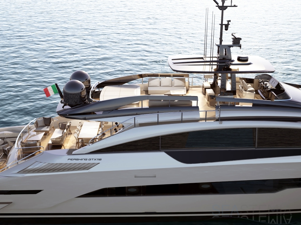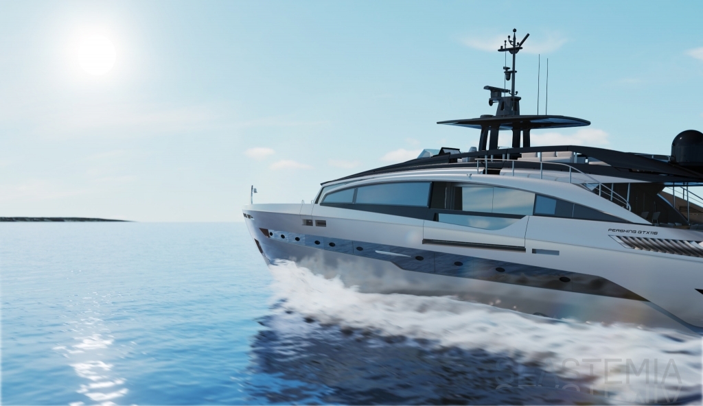 An unprecedent in the Pershing shipyard history, turned to the future. This first model from the brand new GTX Serie is again breaking down all codes to the benefit of the Yachting Experience. The story is starting today with a flagship already of 35-metre yacht. With her sporty nature and extreme liveability, her elegant styling and razor-sharp focus on making life pleasurable, Pershing GTX116 elevates the seagoing experience to a new dimension.
