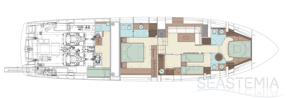 The new Riva convertible 76’ Bahamas is the second model with a dual soul, as both open and coupé. The patented “C-Top” (‘Convertible Top’) system enables a yacht to be transformed from open to coupé mode and vice versa. On the 76’ Bahamas, it effectively doubles the comfort and fun to be enjoyed on board. The new masterpiece brings together the charm of timeless design with the sophisticated pleasure of technological innovation that has produced a super sports boat. With graceful lines and rich in technical features, it is built using cutting-edge materials and sails like a dream. The new model is a further step in the evolutionary path that led to the launch of the 88’ Domino Super and 88’ Florida, the coupé and convertible yachts born of the same design tradition and guided by a similar spirit. Besides, the yacht is based on the technical platform of the 76’ Perseo, Riva’s much-desired coupé model. The layout of the cockpit and helm station, the design of the master suite and lower deck living space, as well as the entire interior styling, have been custom designed for the new convertible. The interior décor also enhances the yacht's Mediterranean character.