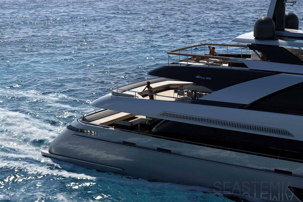 “I’d like to try and cruise on her…”, was the wish Eng. Carlo Riva expressed when the renderings of the first Riva 50-meter mega yacht were shown to him. Since September 2014, when in Monaco Ferretti Group’s Top Management announced the creation of the ‘Superyachts Division’, the ideas and projects revolving around brand's new light alloy fleet have developed rapidly. The dream of building light alloy, displacement Riva superyachts, entirely customizable by the Owner in terms of interior outfitting and décor, takes forward the ambition and ingenuity that between the 1960s and ’70s pushed by Carlo Riva. Today this dream has turned into an increasingly tangible and exciting reality. Indeed, a Riva engineering and design team entirely devoted to the ‘Superyachts Division’ settled down at the Group's Ancona shipyard. Riva’s ‘Superyachts Division’ offers its Owners two different lines, using the same naval platforms. The first line will draw inspiration from the brand’s legendary history, and from the class and perfection of true yachting masterpieces like the famous ‘Caravelle’, conceived by Eng. Riva in 1964. The second sporty line will feature details reminding of the last generation of Riva coupé yachts, the one to which the recent 76' Perseo and 88' Domino Super belong. It will be just from these latter models’ slender and modern look that the second line’s more aggressive profile and lines will draw inspiration. Each of the two lines will be available in four different sizes: 50 meters, 60 meters, 70 meters and 90 meters in length.