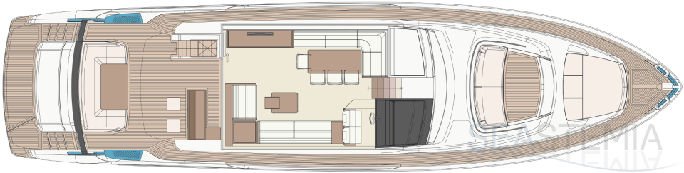 The best-loved Riva sport-fly of recent years proposes new aesthetic solutions combined with unprecedented design and functional features for an increasingly sporty, elegant and high-performance yacht.