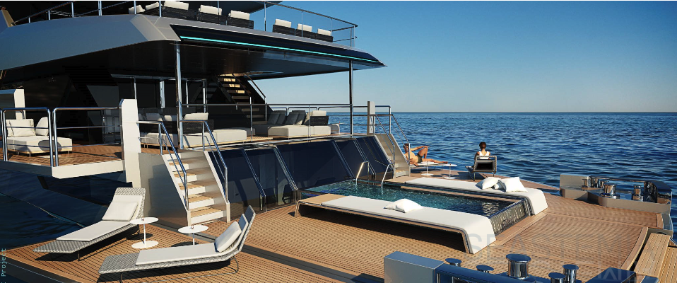 RIVA will push again boudaries using its know-how and expertise, by concentrating the top of the nautical industry in terms of features specifications, specification and high-end quality integration in a 54 meters Aluminum semi displacement Vessel below 500GT with beach club, swimming pool, and much more to serve the ultimate satisfaction of the most demanding clientele...