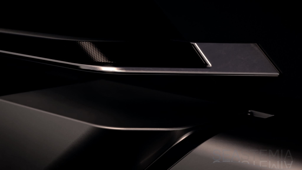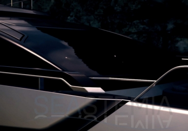 Aft, the all-glass fashion plates enhance the aerodynamics of the yacht and tell a story of appeal and elegance. The air intake grills and carbon fibre detailing are a reference to traditional car design, while the hard top brings dynamism and style with its sporty personality.