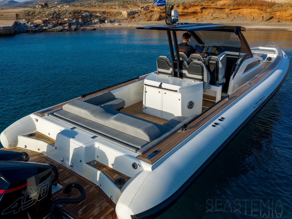 To further enhance performance, Omega 47 encompasses an advanced technology, top quality materials and state of the art production techniques that deliver a rigid, yet light weight and durable vessel. From CNC prototyping to ceramic coated molds and from epoxy resins, high density foam core materials and vacuum infusion production, to the use of carbon fiber that is cured in a computerized oven, all add to one of the best built boats in Europe.