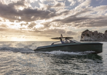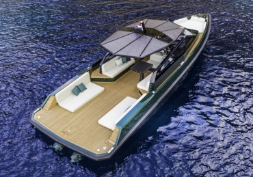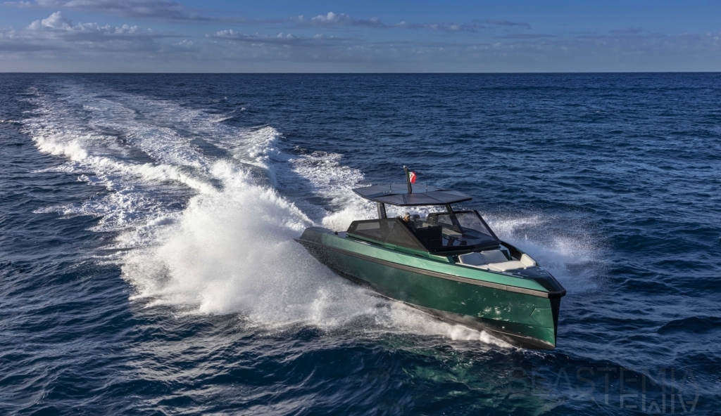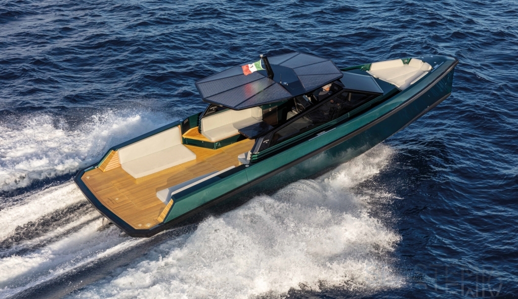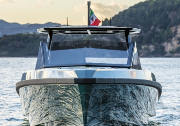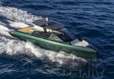 Very fast, robust and practical 13-meter runabout where form perfectly balances with multifunction, introducing the innovative “center cockpit” design to provide all the protection of a cockpit with the practicality and access of a walkaround. Those onboard can enjoy the feeling of being in the open air with the added security and comfort typical of a more enclosed yacht.