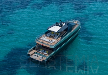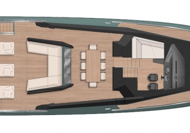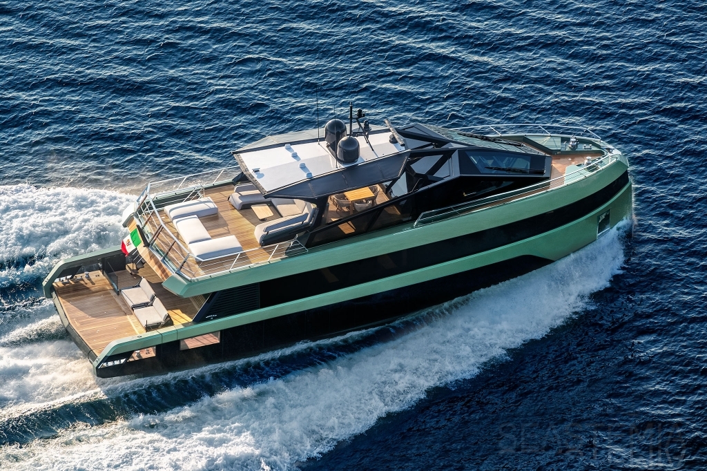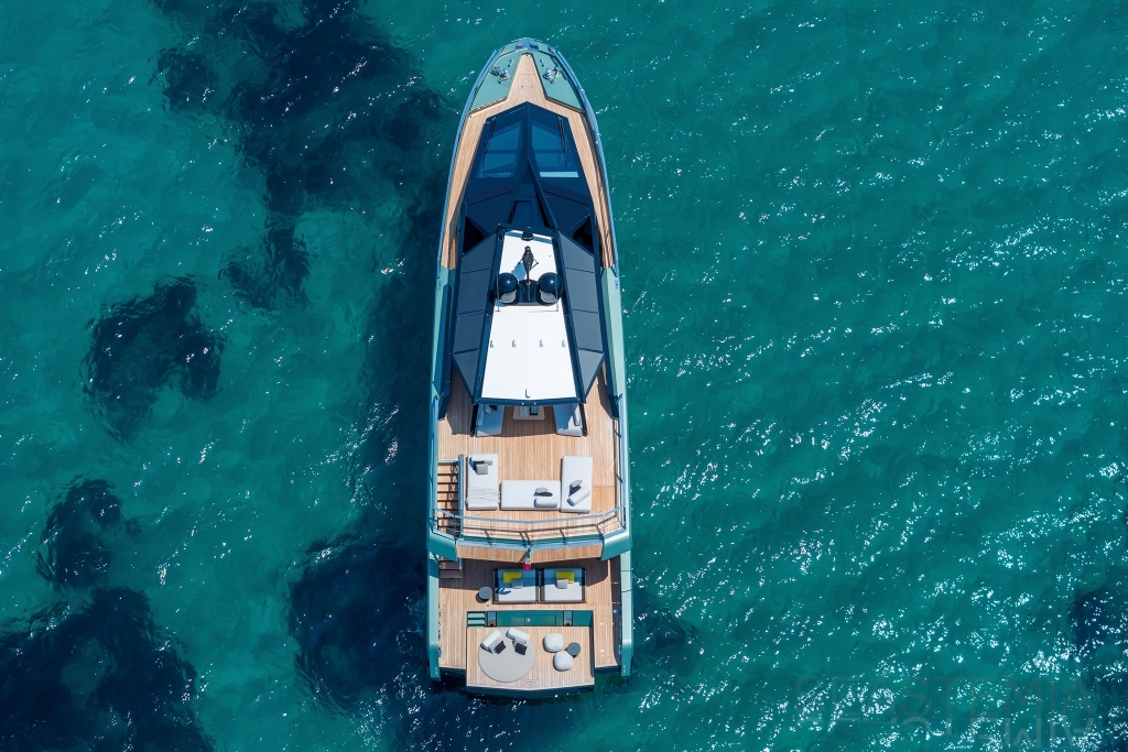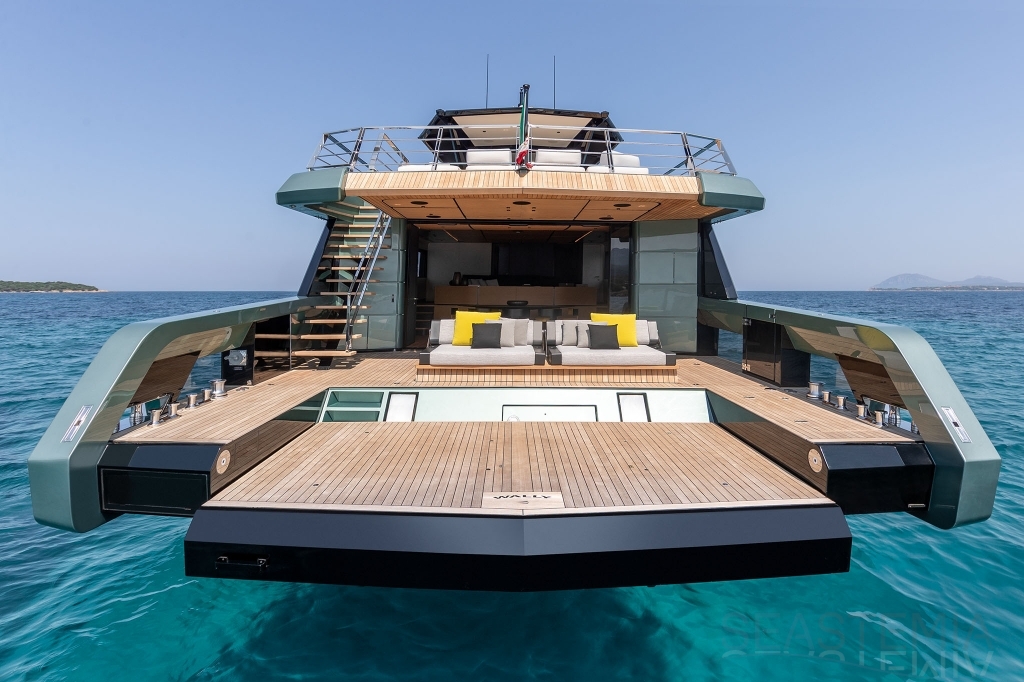 Overcoming engineering challenges, Wally’s use of floor-to-ceiling glass floods the flexible dining and lounging space of the main saloon with light. Unheard of 2.5m headroom and flush decking allow