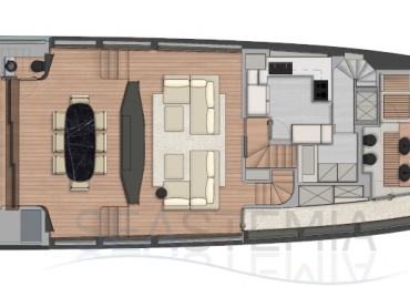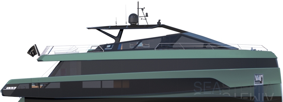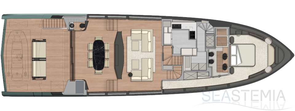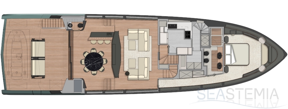 What other sub-24m yacht is able to offer such a large master cabin on the main deck? From this ‘amphitheatre of the sea’, the wrap-around glazing in the high bow gives the owner a breathtaking 270-degree view from the comfort of their large double bed.