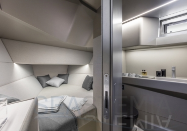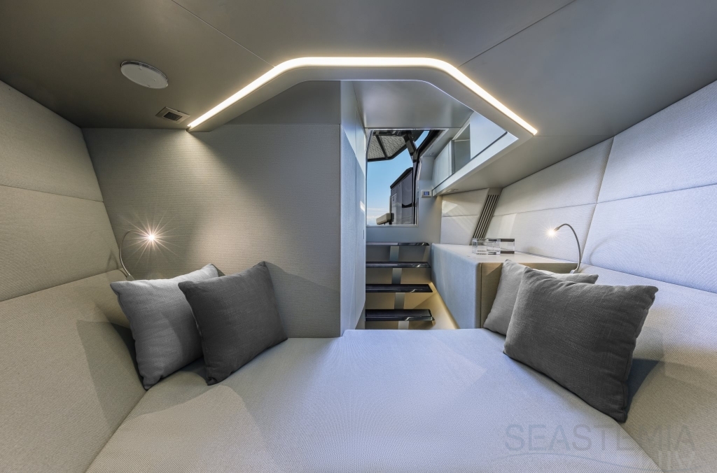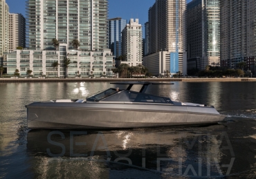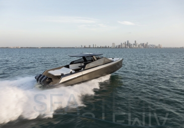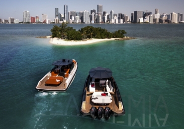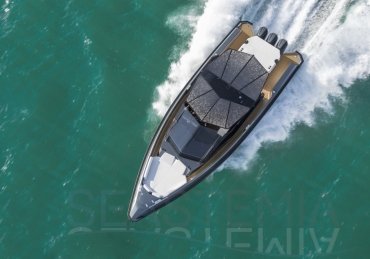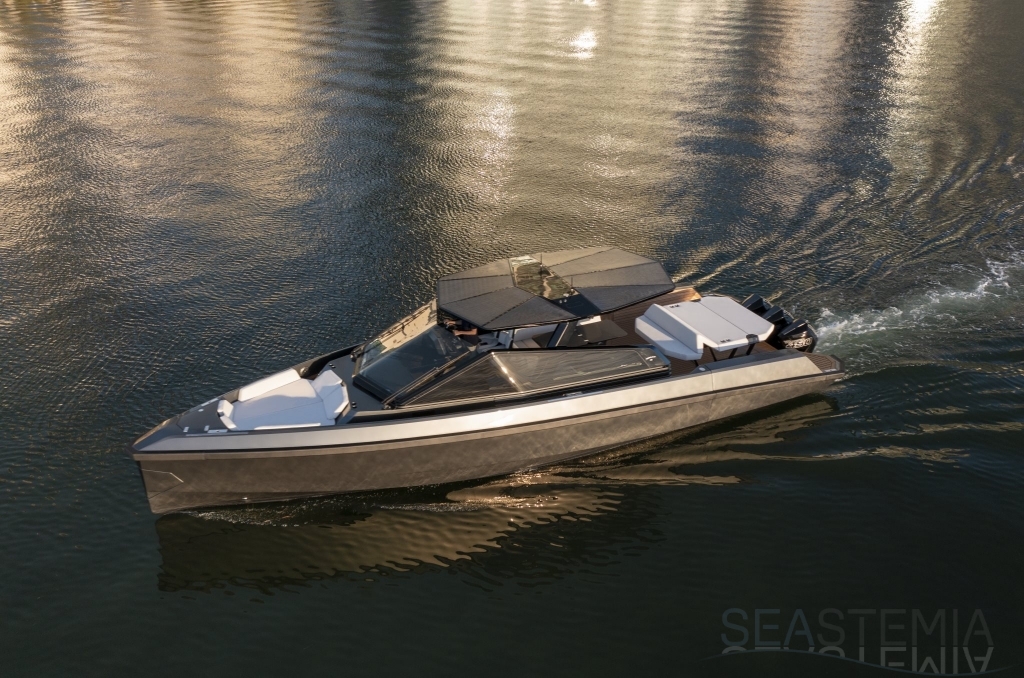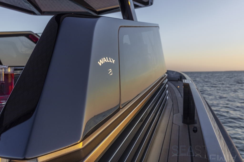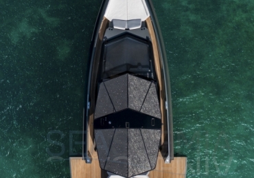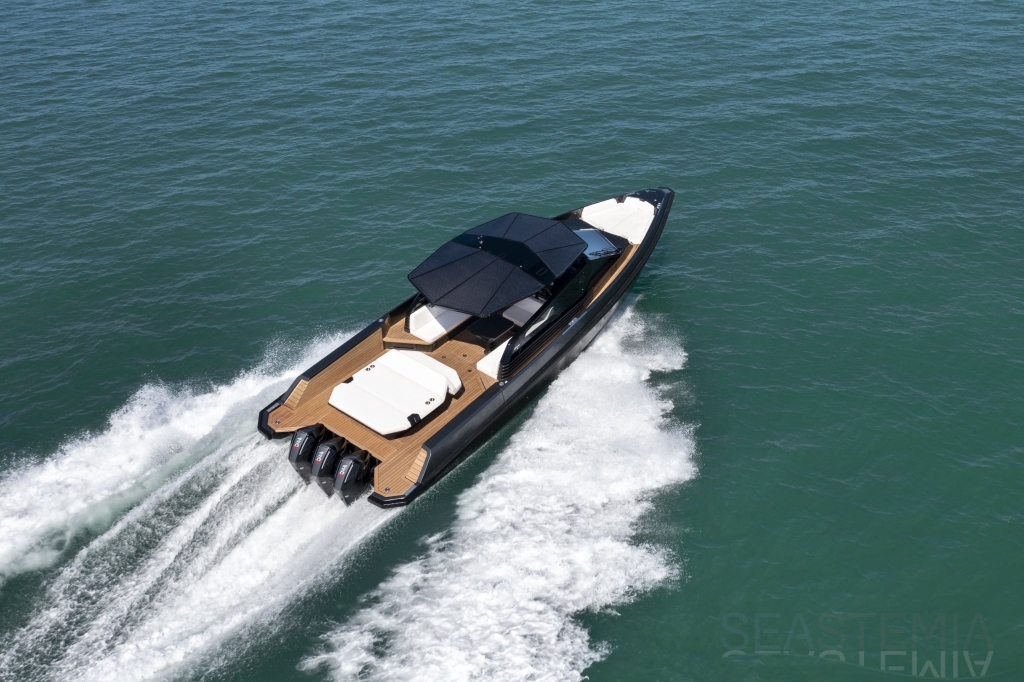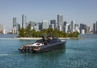 Packing the same angular aesthetic and slippery hull as the wallytender43, this outboard version can exceed 50 knots with the option of three Mercury Verado 450R racing engines. And yet, control is pitch-perfect; the hull delivering exceptional seaworthiness. Joystick controls, dynamic positioning and autopilot come as standard.