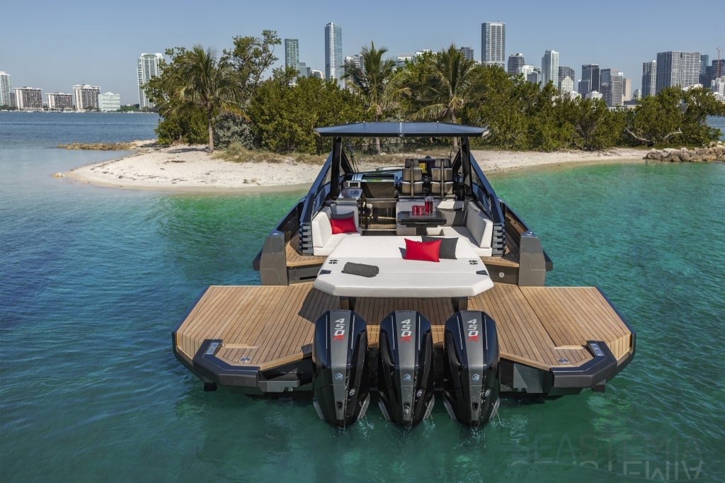 ‘X’ stands for exhilaration when it comes to this perfectly formed dayboat. With the capacity to specify up to three outboards on the V-transom, speed is at the very core of the design of the wallytender43X.