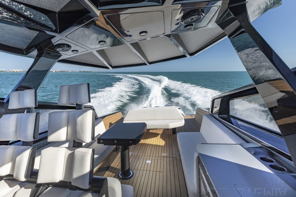 Flexibility is another defining trait of the wallytender43X, which converts easily between a family day boat, superyacht tender or resort shuttle. The innovative centre cockpit offers optimum protection