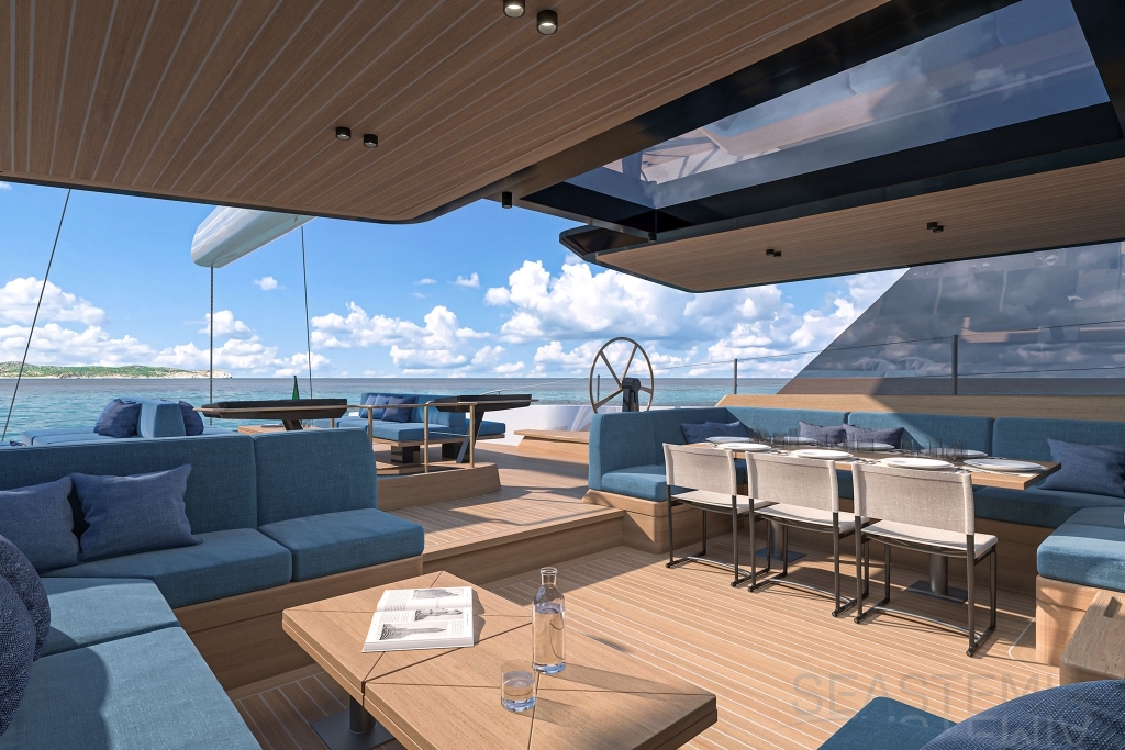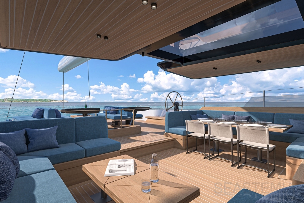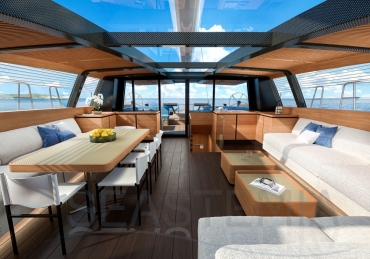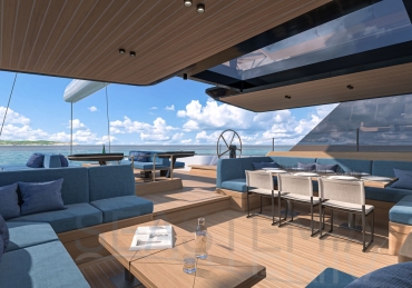Cockpit space is on a whole different scale, with three distinct zones that run aft to the sofas around the beach club - there’s room to entertain 20 or more guests here in extraordinary comfort and style.