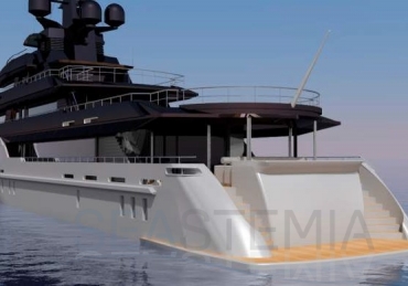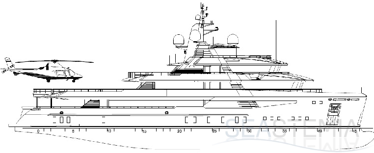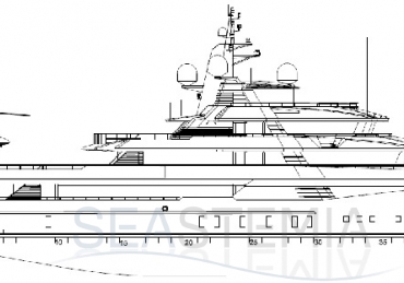 This 49,75 meters steel hull and aluminium superstructure will accommodate 14 guests in 6 suites.