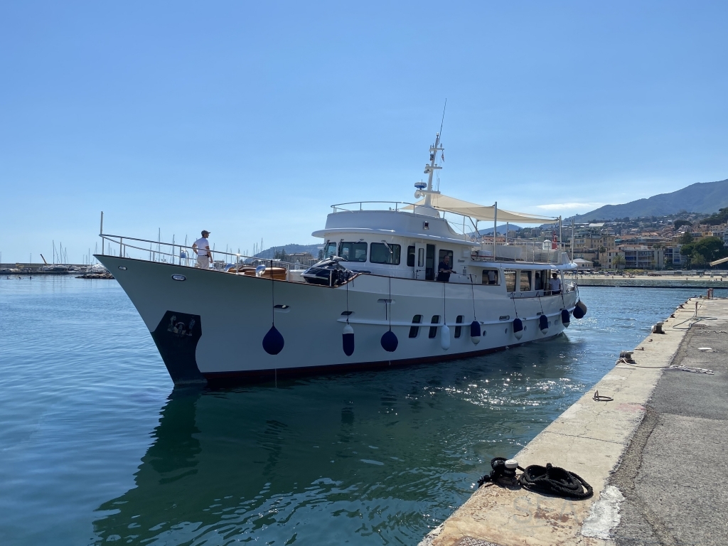 Bright high quality example of the mid last century 1950-60's Yachting excellence, this Canoe Stern Yacht is a flagship by itself of what was yachting golden age in the French riviera. Built in 1969 and fitted with 2 original Gardener Engines totally rehauled in 2012 together with the rest of this Yacht for an extensive refit at the Feadship yard in 2012, to grant this unit its a true Pedigree but adding what's needed of modern technology to do not compromise comfort and safety onboard.