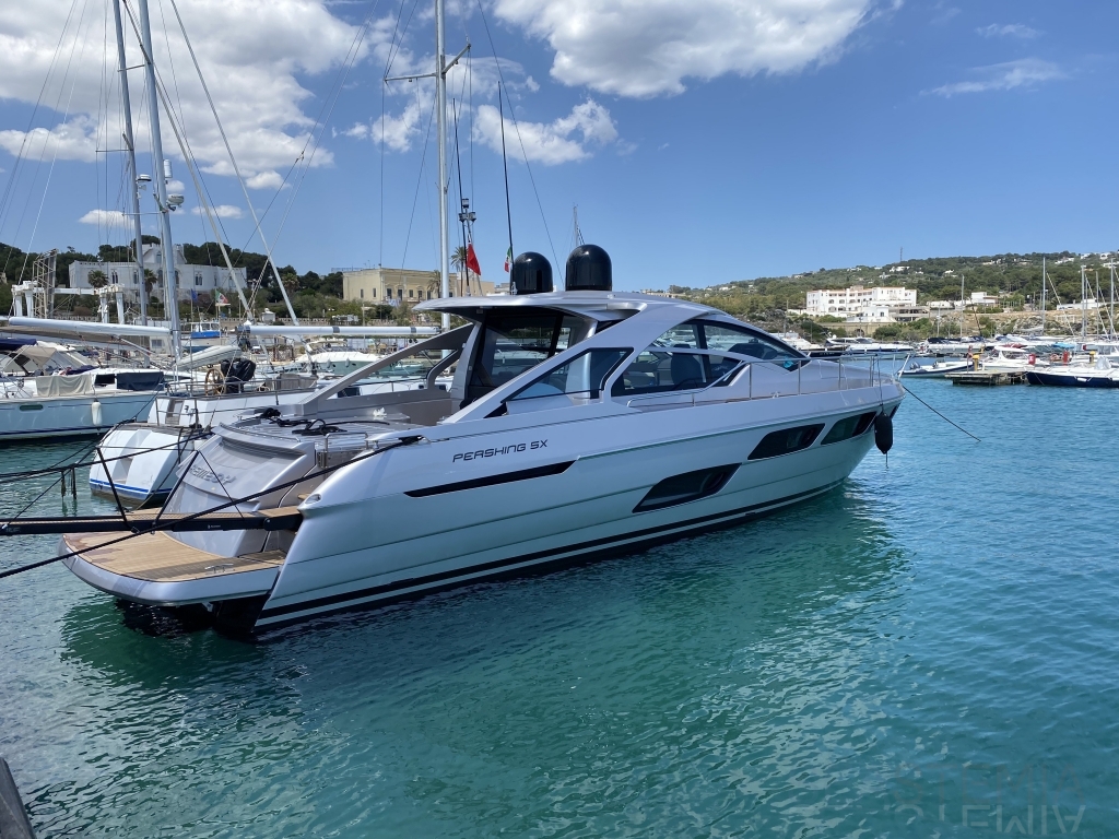 This Pershing 5X was launched on the 26th of May in Fano where shipyard produces the brand’s models.