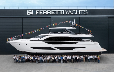 Cattolica, June 22, 2022 – The symphony begins, and the perception is one of total harmony. The launch of the first Ferretti Yachts 860 brings the yachting world a flybridge featuring cutting-edge design solutions shown off with elegant ‘Made in Italy’ style. Eight months after the presentation of the project, which has a special focus on comfort, wellbeing and outstanding performance, the first unit hit the water today and will be handed over to the owner for her maiden cruise in the Mediterranean.