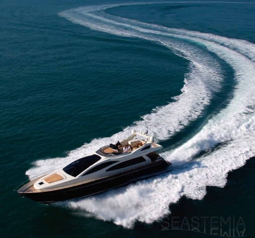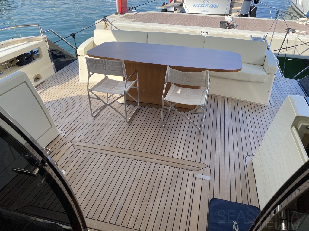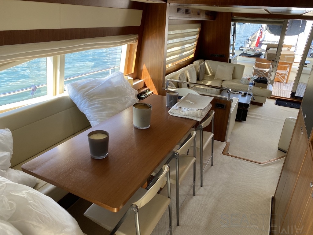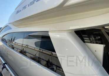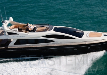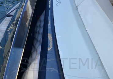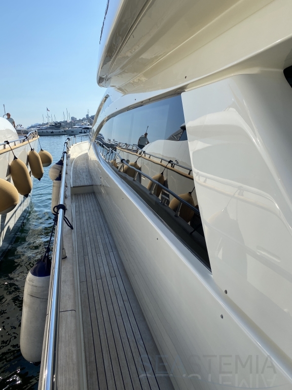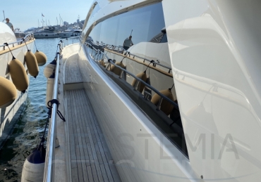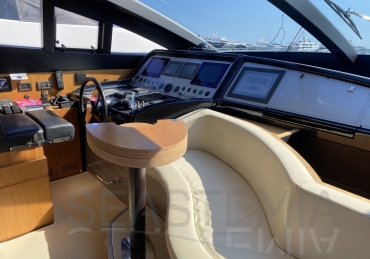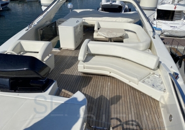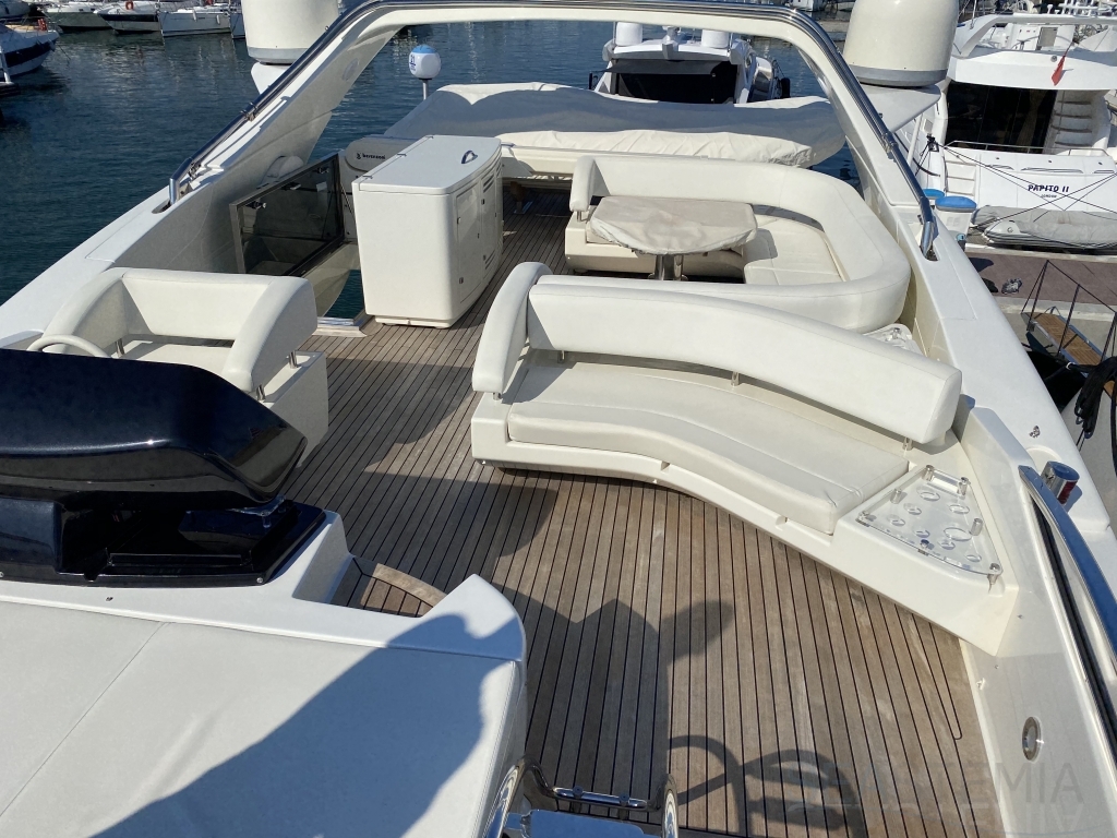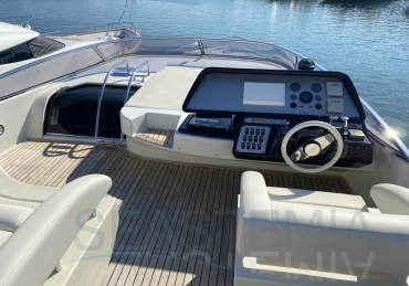This boat is equipped with a stabilizer, cockpit controls (front and rear thruster), a jet ski park and a 385 jet tender!