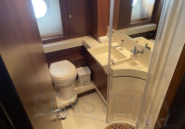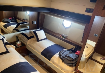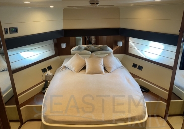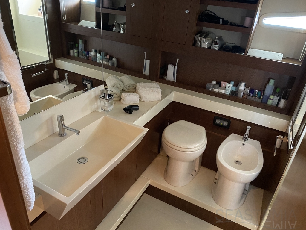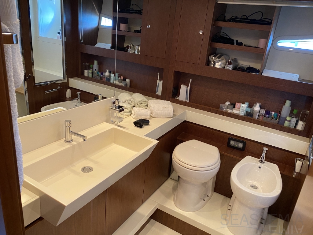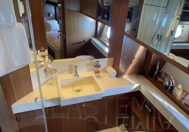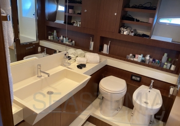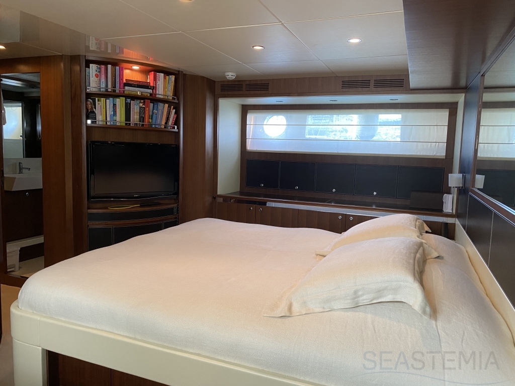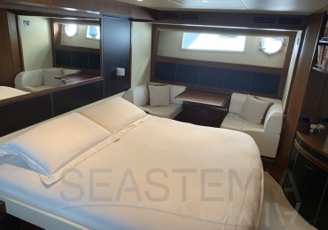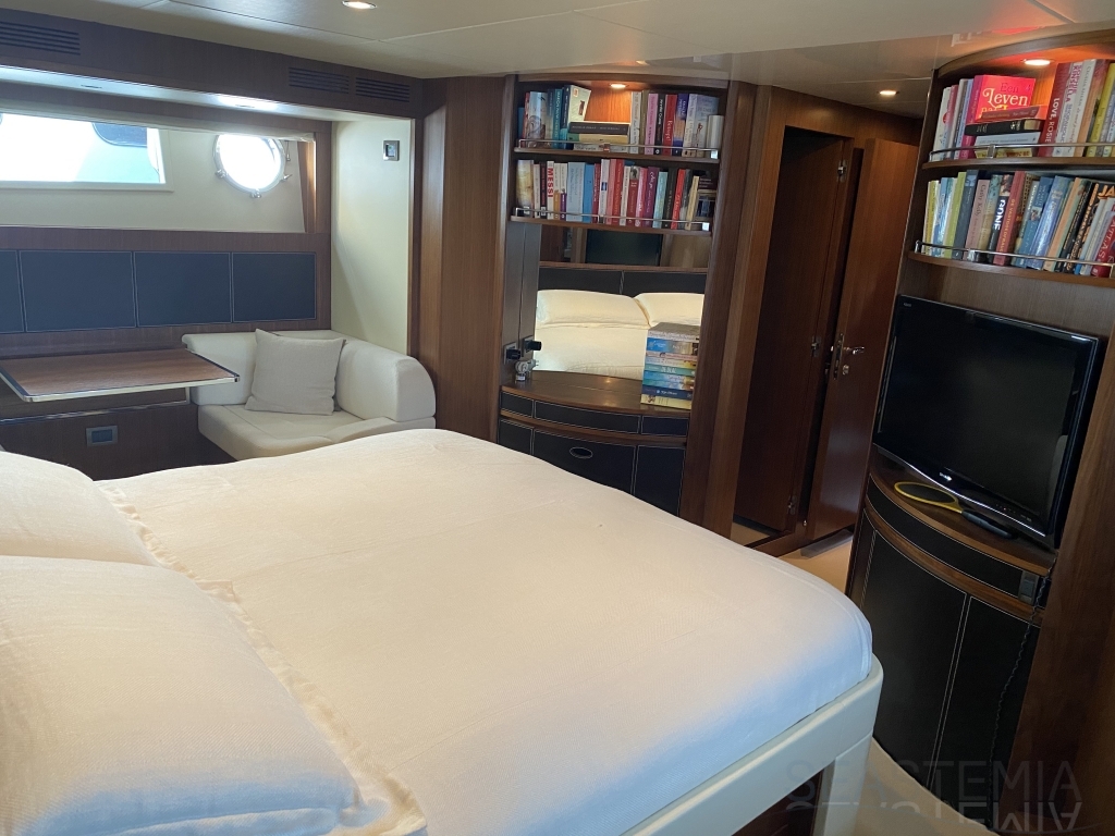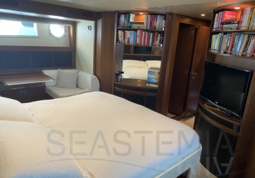 Its consists of a very nice master with library, a large mirror was installed at the request of the owner during the construction of the boat, which greatly enlarges the room, the bed is also larger.