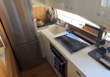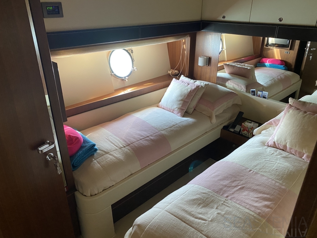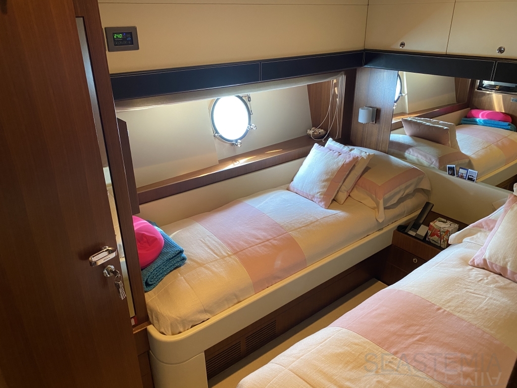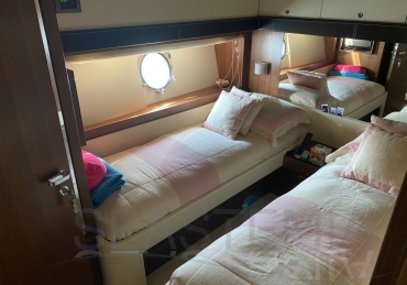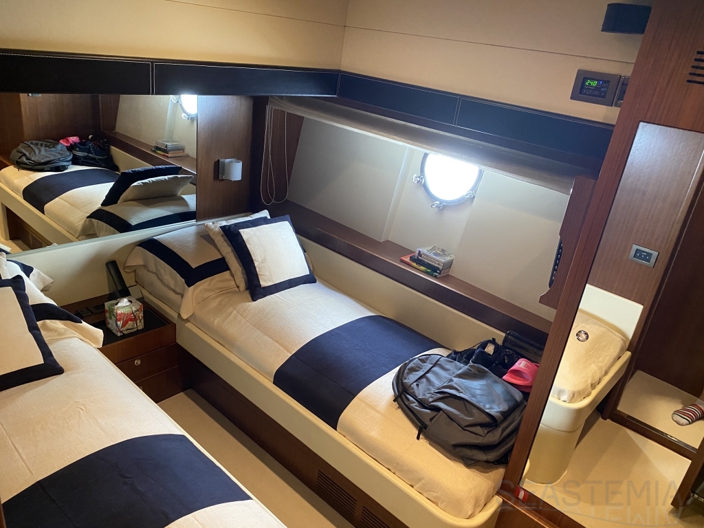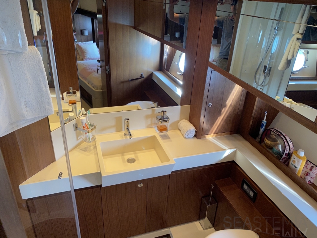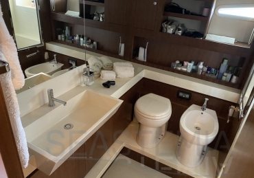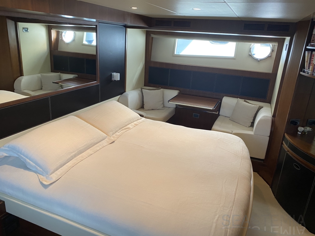 Its consists of a very nice master with library, a large mirror was installed at the request of the owner during the construction of the boat, which greatly enlarges the room, the bed is also larger.