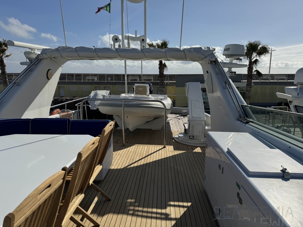 This cusom aluminium semi displacement Raised pilot house is a voluminous 197GT superyacht with a long range which has been launched in 1993 from Astilleros, a spanish shipyard which is a reknown specialist of Aluminum connstruction.