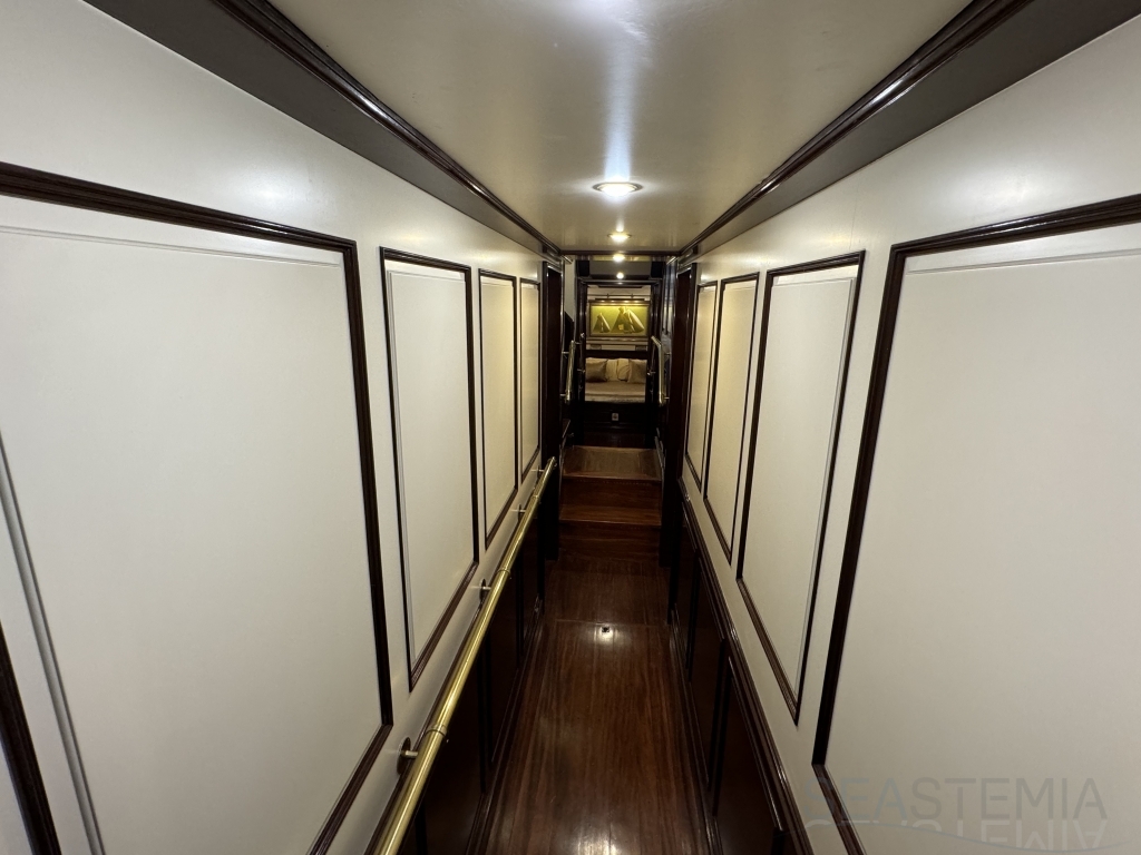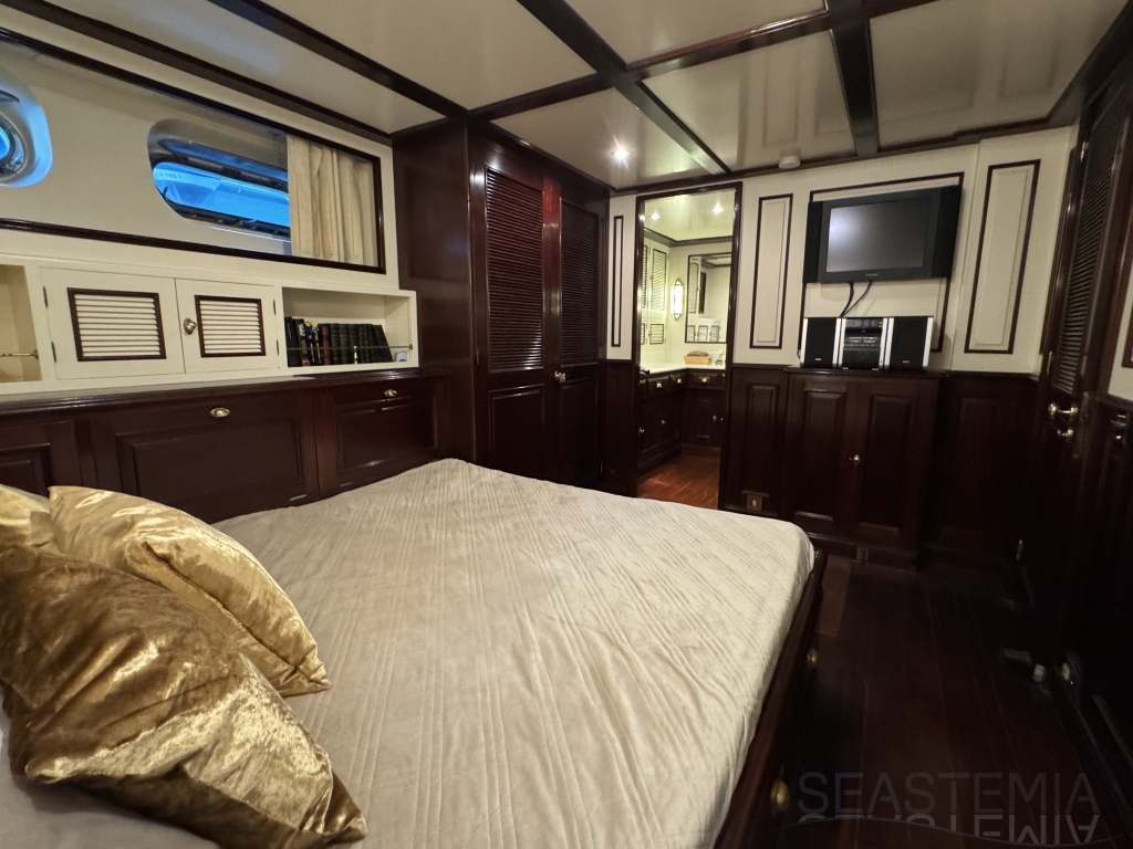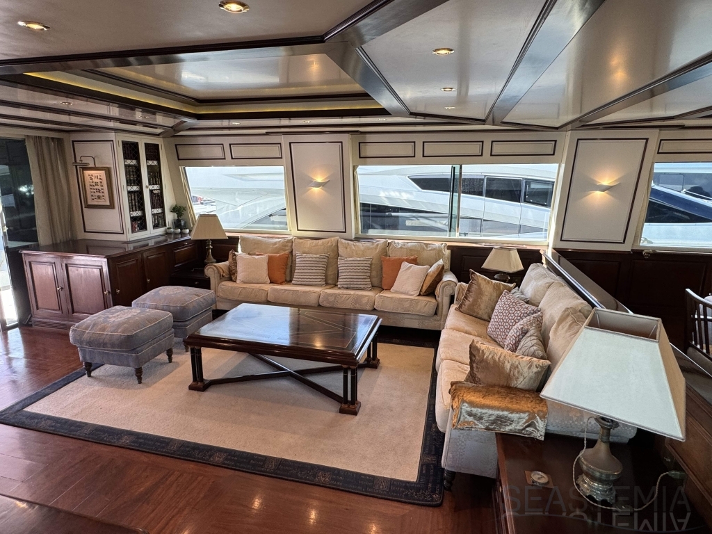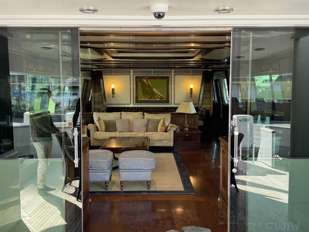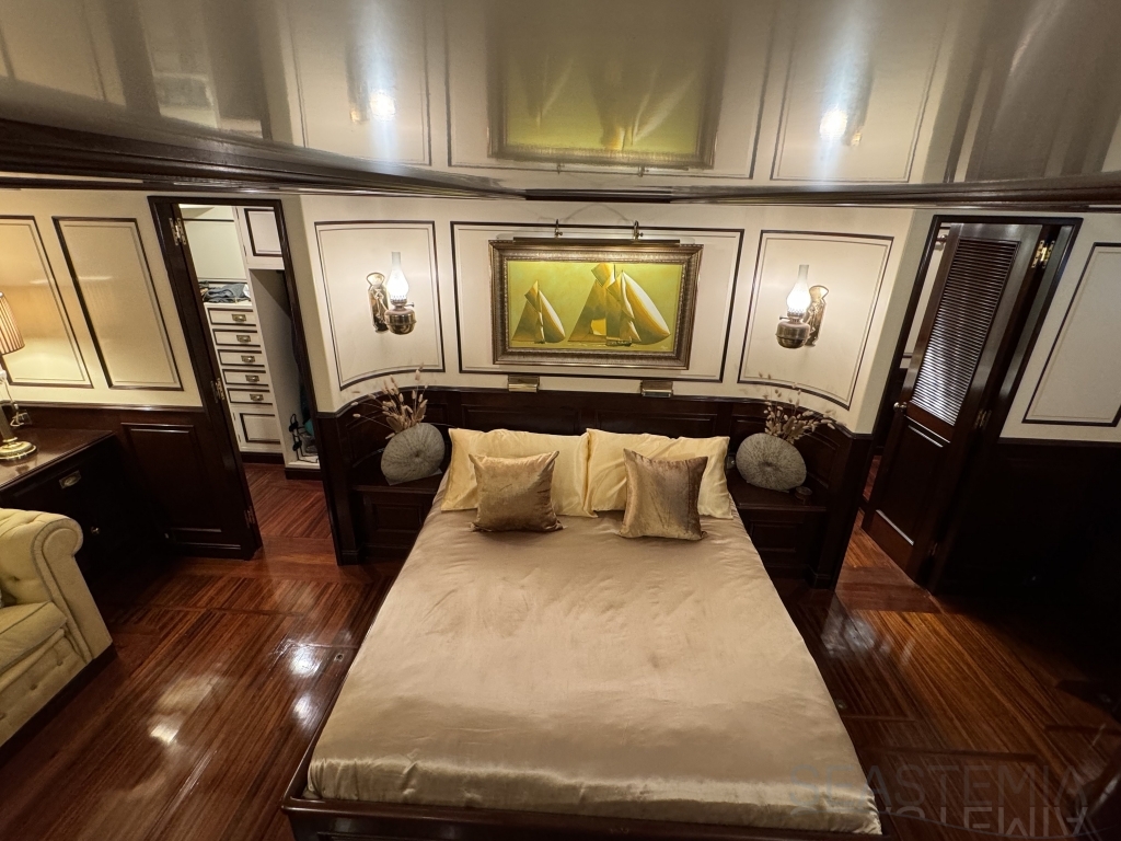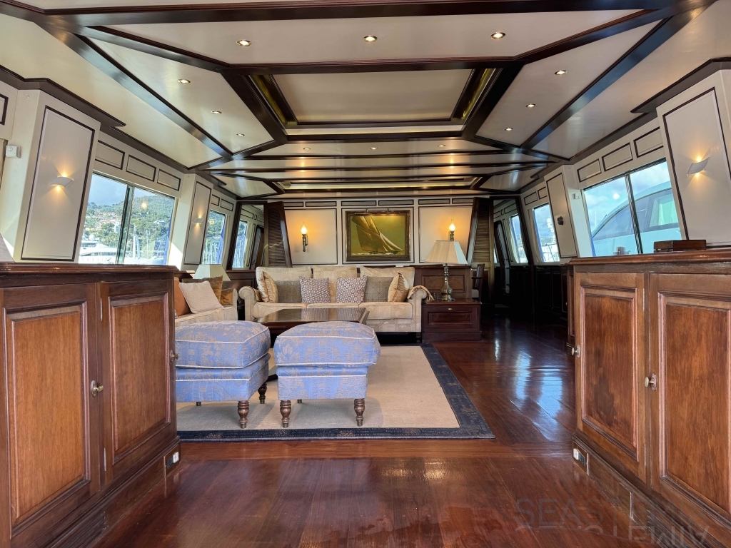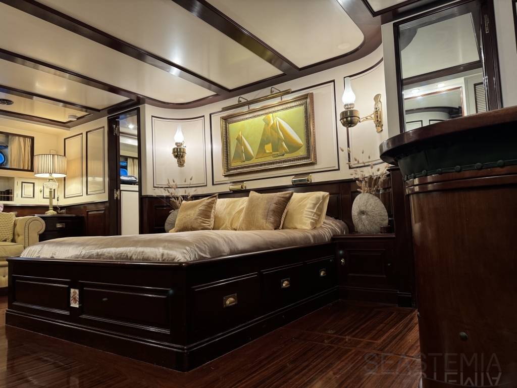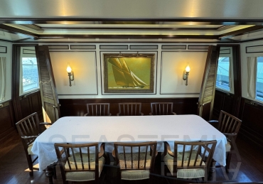Shee got an extensive refit in 2005 and is maintained since then by her third owner in a very good aesthetical and technical condition, with regular maintenance jobs and a permanent crew onboard. Strong MTU engines, 5 cabines layout to accomodate in full comfort 10 guests served by 6 crews in an elegant massive dark wood and rich carpentry interior to complete the picture, to offer a true classical luxury Yachting experience.