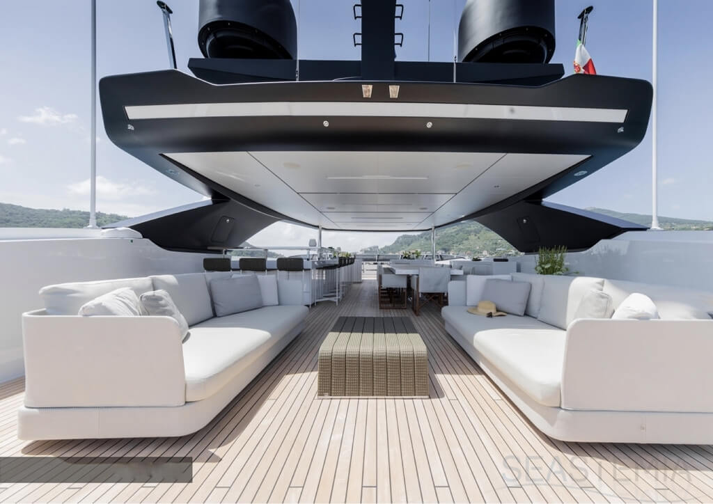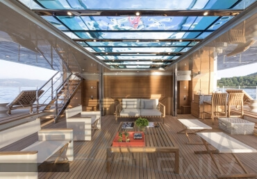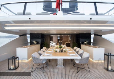 Her generous deck areas play host to a wide range of amenities including an outdoor bar, Jacuzzi and ample space for sunlounging and relaxing. Seven Sins's impressive leisure and entertainment facilities make her the ideal charter yacht for socialising and entertaining with family and friends.