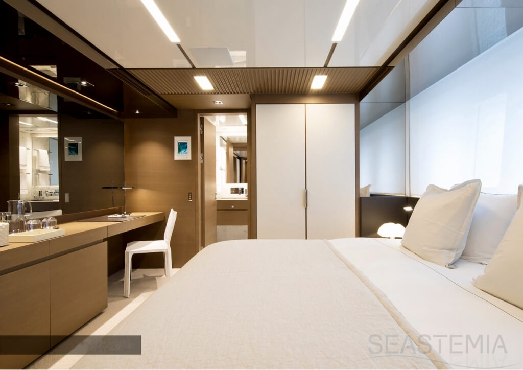 San Lorenzo 52 meters interior layout sleeps up to 10 guests in 5 rooms, including a master suite, 1 VIP stateroom and 2 double cabins. She is also capable of carrying up to 9 crew onboard to ensure a relaxed luxury yacht experience. Timeless styling, beautiful furnishings and sumptuous seating feature throughout to create an elegant and comfortable atmosphere.