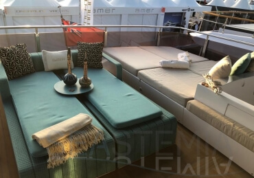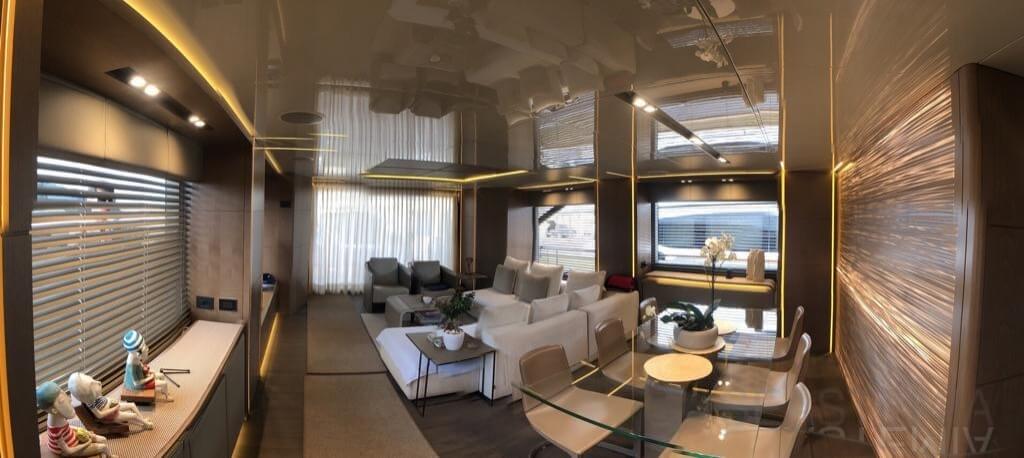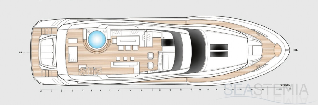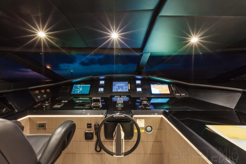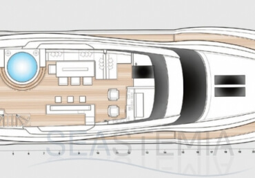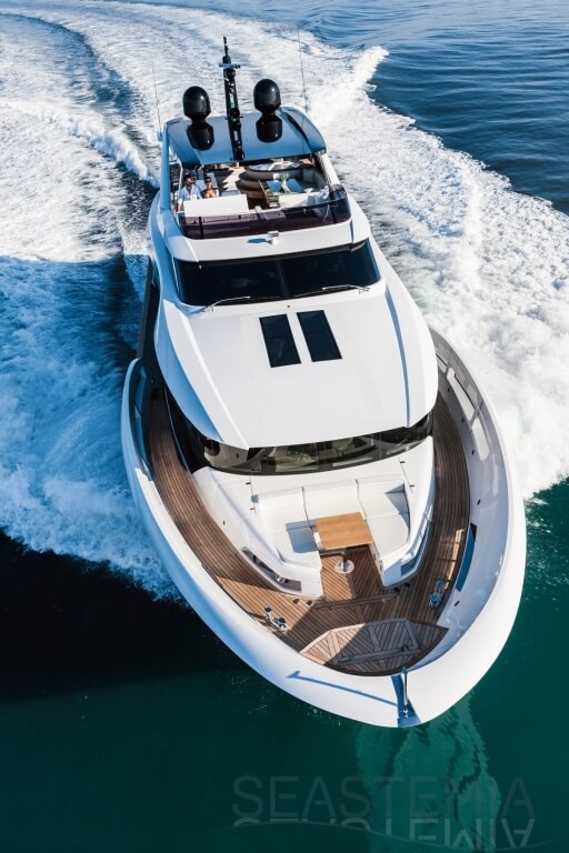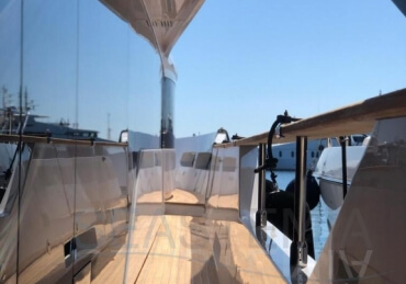 Thanks to its semi planing lama new hull from Arabito, the yacht at 12 knots consumption is no more than 70 ltrs in total with a range increased to 1400NM, while when needed she can reach a top speed of 23 Knots.