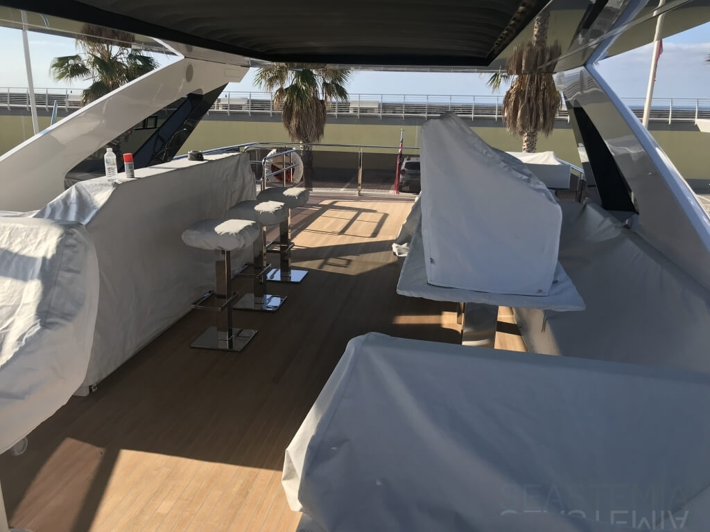 Raised Pilot House type, full on her spec with two V12 MAN 1400Hp engines of 880 hours each, two 27KW generators,  0 speed and navigation fin Stabilizers, garage for a 3.85mtr Williams Jet tender, a very large flybridge with jacuzzi and Paola Lenti loose furnitures, and hydraulic aft swimming platform with Jetski and hydraulic swimming ladder at the aft, a crew quarter for 5 crews, water maker, etc, etc...