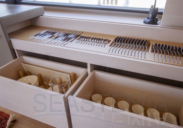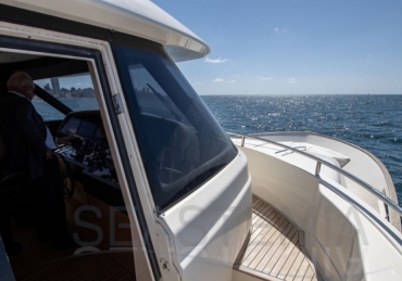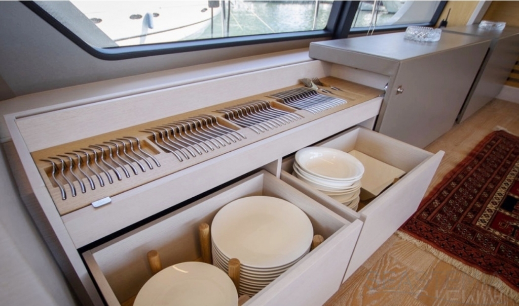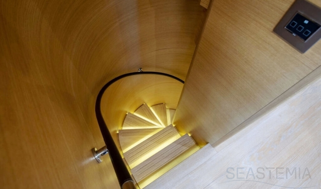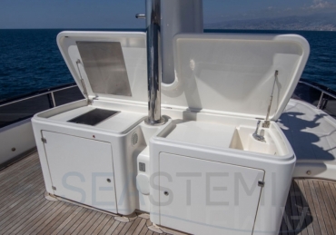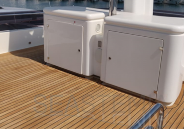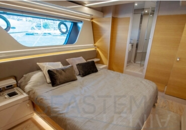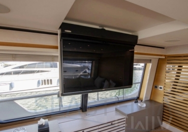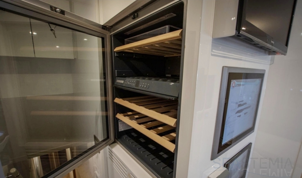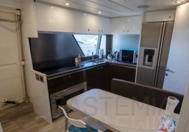 On the main deck, a continuous window goes from stern to bow, while below deck there are four innovative hull windows at the level of the guest cabins, installed for the first time on the market, with “invisible” portholes glued into the glass itself.