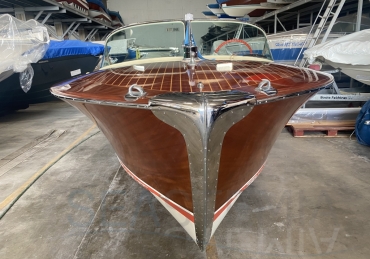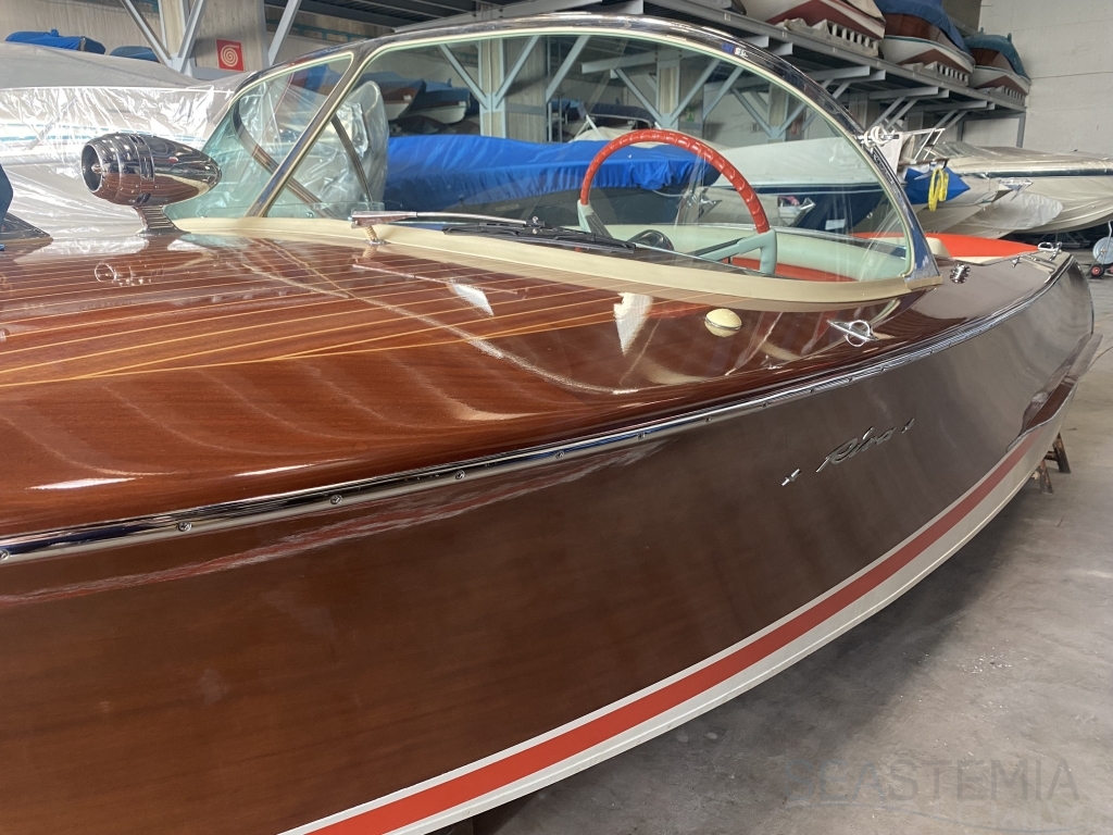 Nous vous proposons ici un tres bel exemplaire du fameux modèle classique de chez Riva entièrement en acajou: Le RIVA FLorida Super. Doté d'un historique clair, construit en 1965 et récupéré en Sardaigne par son second et actuel proprétaire actuel depuis plus de trente ans, ce bateau porte le numéro 589 dans la serie des 711 exemplaires construits au total entre 1953 et 1968. il a été entièrement restauré dans le respect  des techniques originelles à son état d'origine pour être aujourd'hui encore en état concours. (coque/ moteur/scellerie/acastillage...)