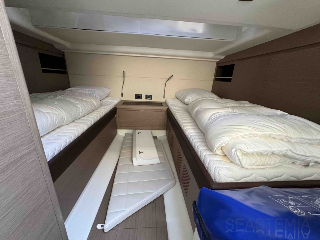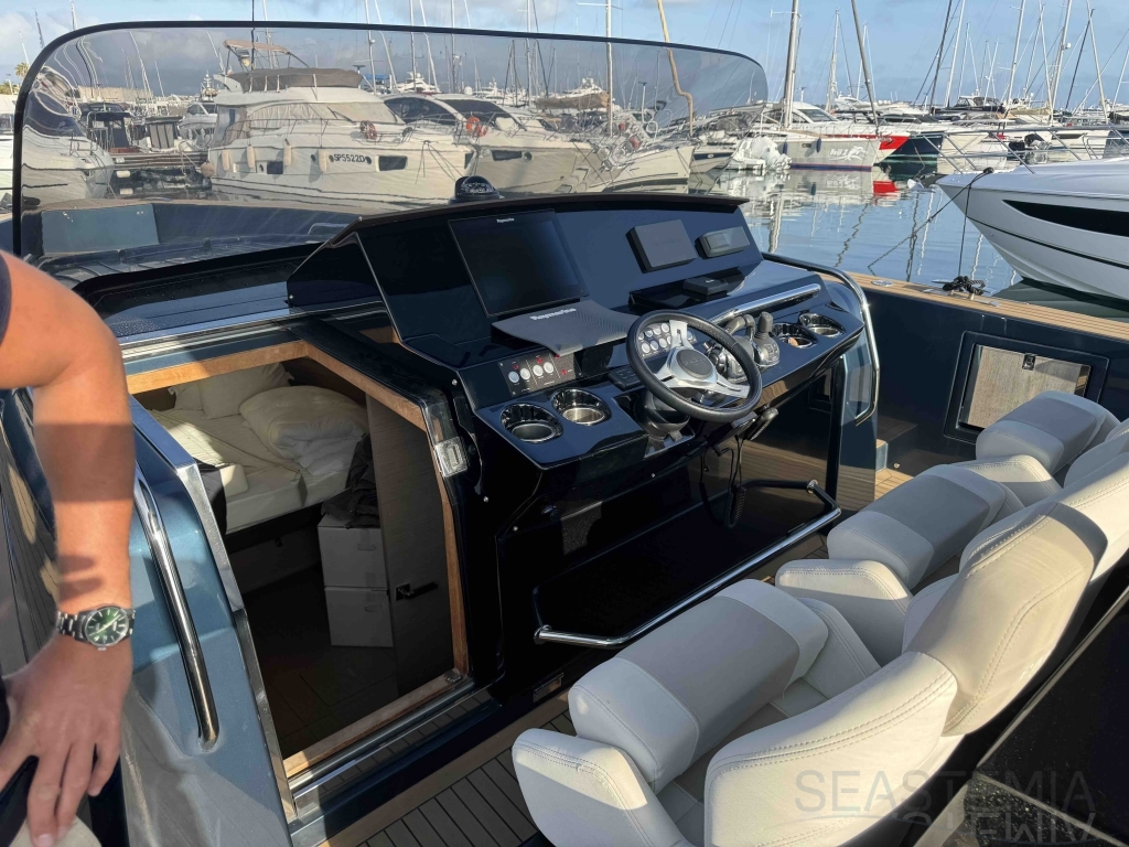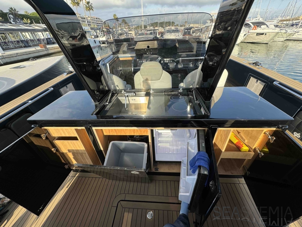 Le Pardo 43 de 2018, situé sur la Côte d'Azur, en France, mesure 14,00 mètres de longueur hors tout et 4,20 mètres de large. Connu pour ses solutions techniques supérieures, ses performances, son confort et son luxe, ce bateau atteint une vitesse de pointe de 34 nœuds et navigue confortablement à 26 nœuds. Il dispose d'une cabine propriétaire avec un lit double et deux lits simples pour les invités. Ce yacht bien équipé comprend deux grands bains de soleil (avant et arrière), une grande plateforme de bain, un bimini électrique, un stabilisateur gyroscopique à vitesse zéro Seakeeper, un générateur et la climatisation. Avec seulement 270 heures, ce yacht privé est en excellent état.