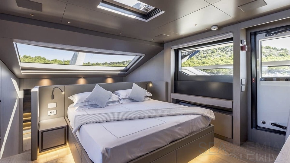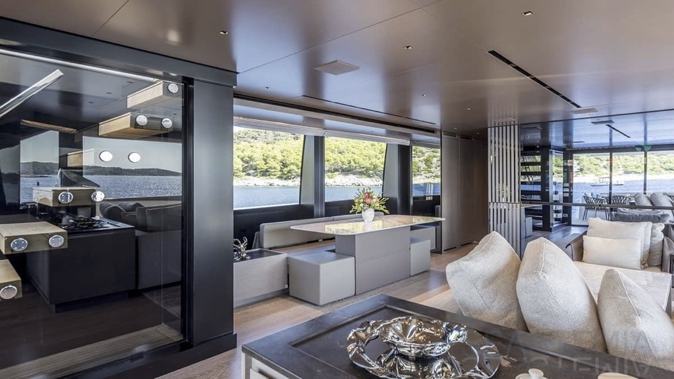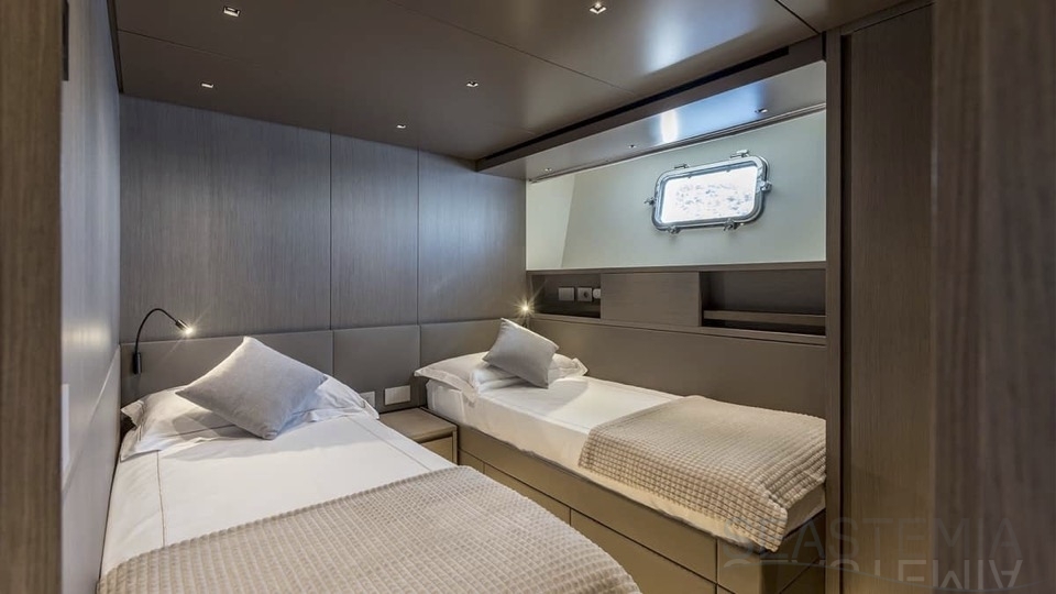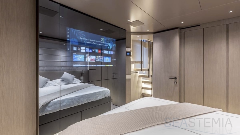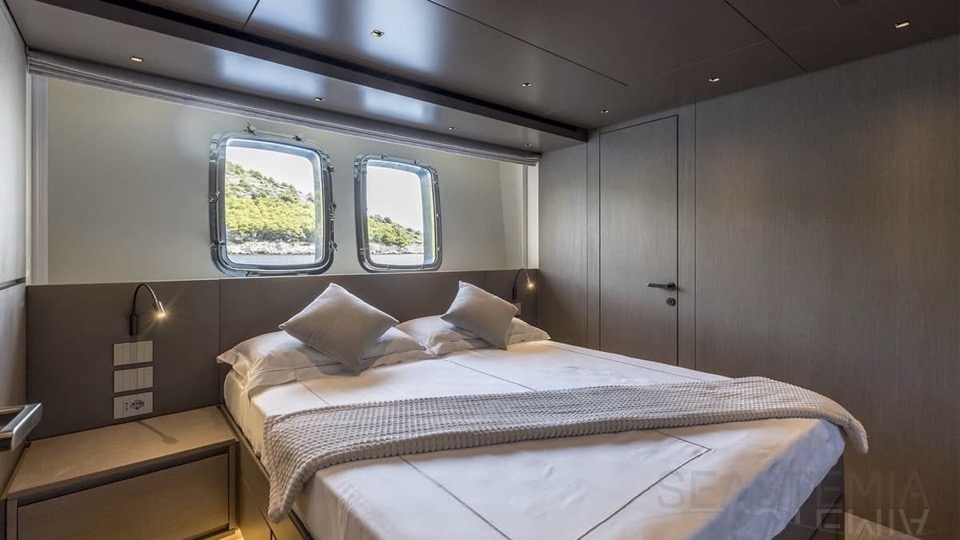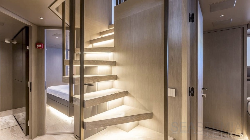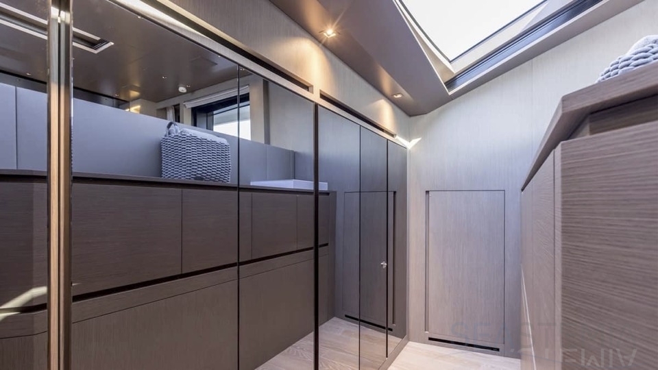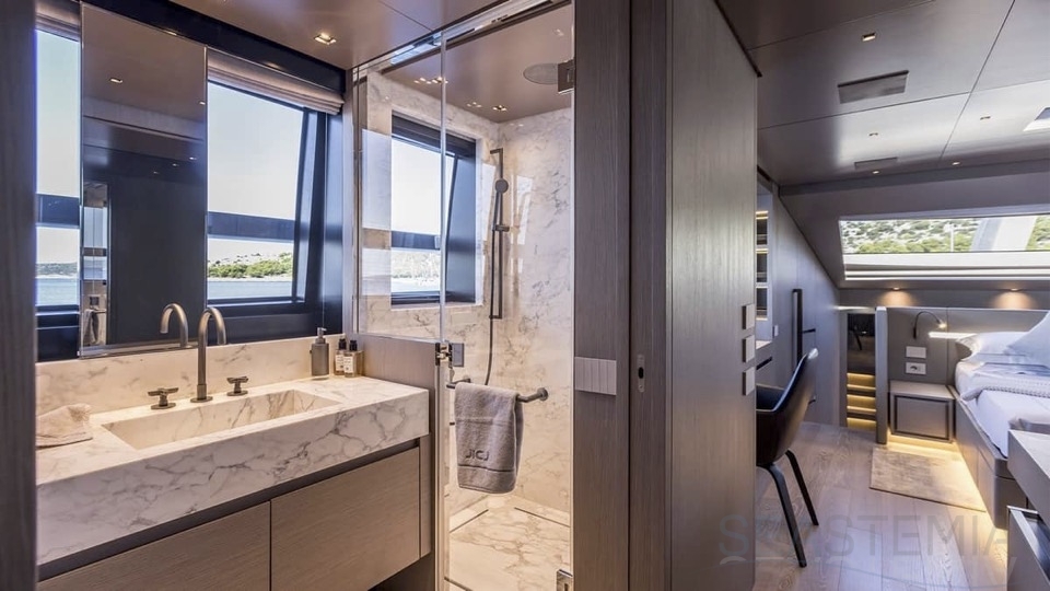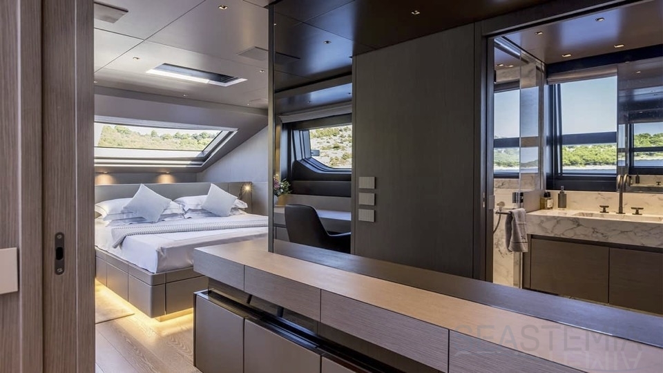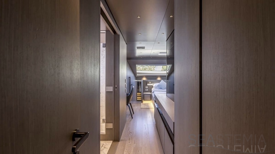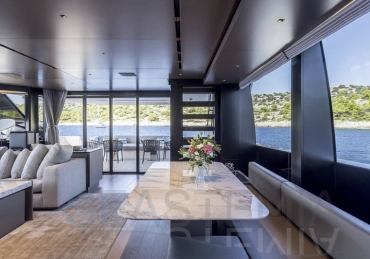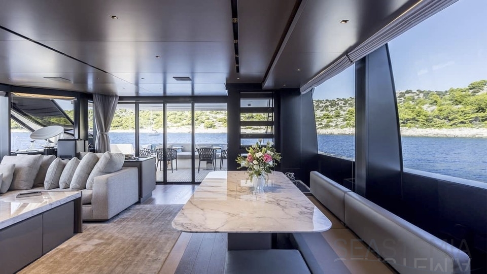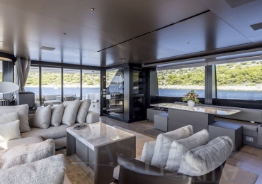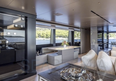Delivered in July 2023, this SL96A is a rare opportunity to purchase recently built Sanlorenzo, part of the revolutionary Asymmetric series. With a modern and elegant design and high-end specifications, this yacht also presents exceptional charter potential. Competitively priced, she is a perfect fit for an owner interested in acquiring one of the newest yachts in her category without the lengthy new build wait. SL96A boasts a 5 cabin layout with an additional pullman bed to accommodate a total of 11 guests. The Owner’s stateroom offers direct access to the port side enhancing privacy and convenience. SL96A offers exceptional volumes for a yacht of her size, making her feel like a much larger vessel. In fact, her unique innovative asymmetric design provides 15% additional volume on the main deck. Floor-to-ceiling windows offer lots of natural light and amplify the effect alongside a sliding wall on the port side in the main salon, providing unparalleled panoramic views, bringing the beauty of the sea indoors.
