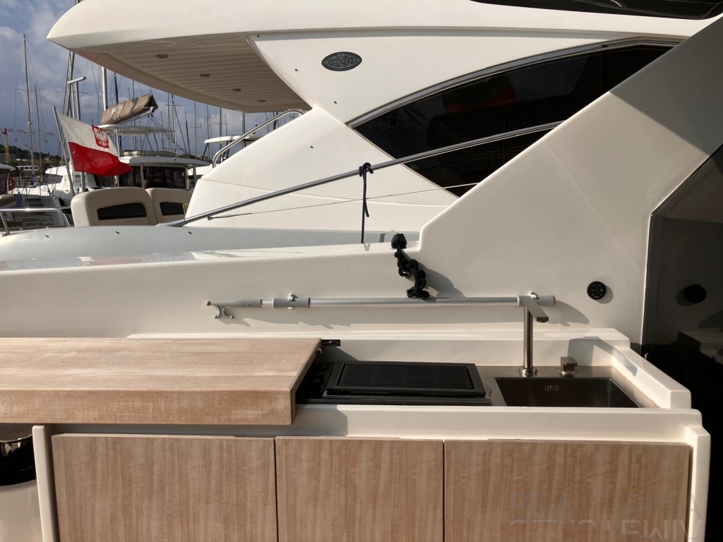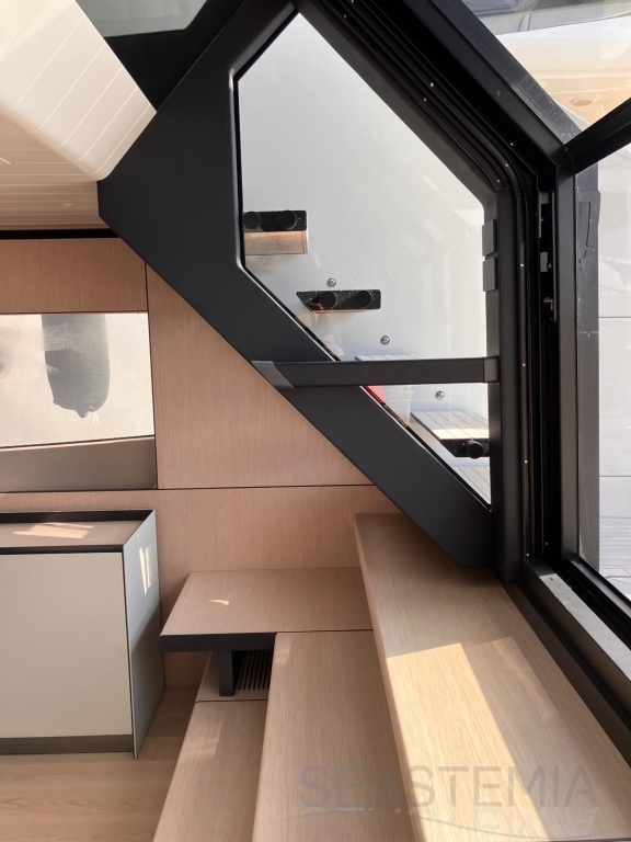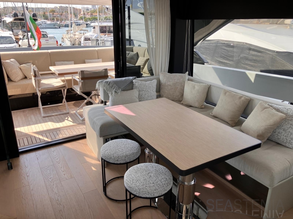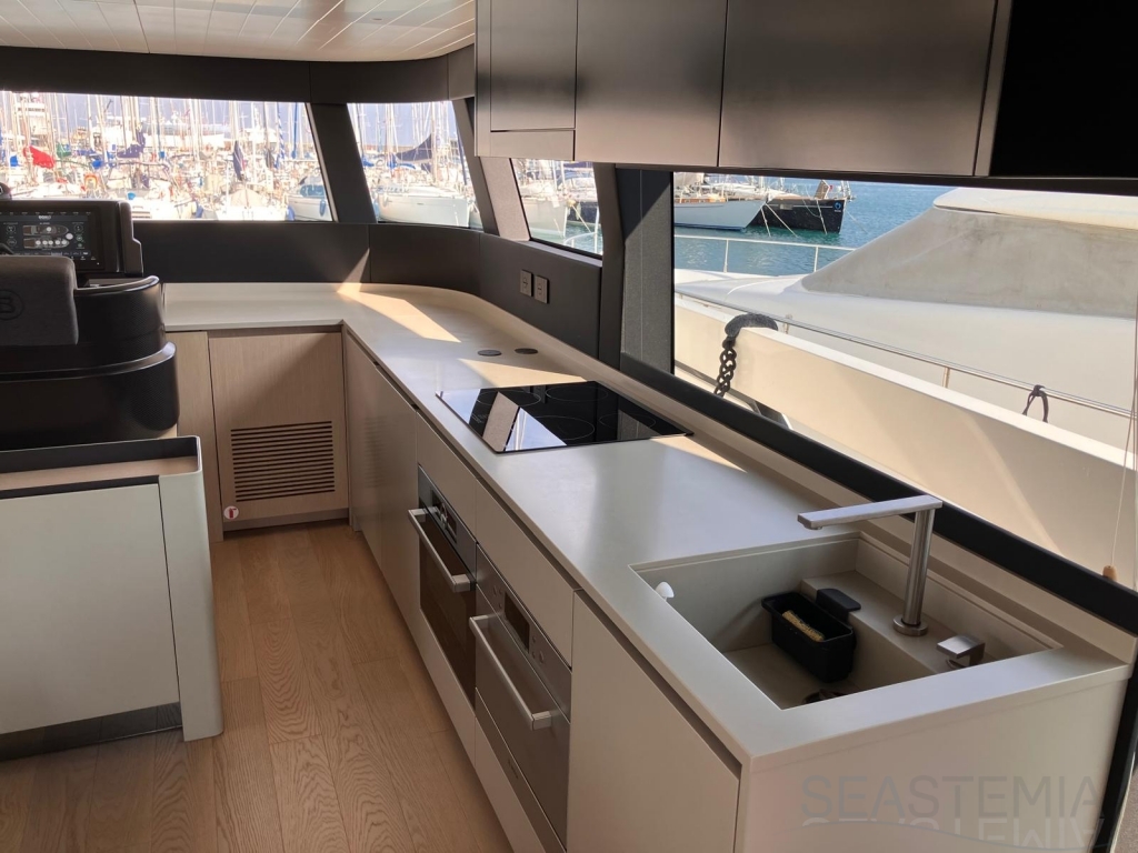 The elevated aft cockpit ensures both privacy and a welcoming atmosphere, with smooth access to the galley and main deck dining area—perfect for entertaining guests in absolute comfort.